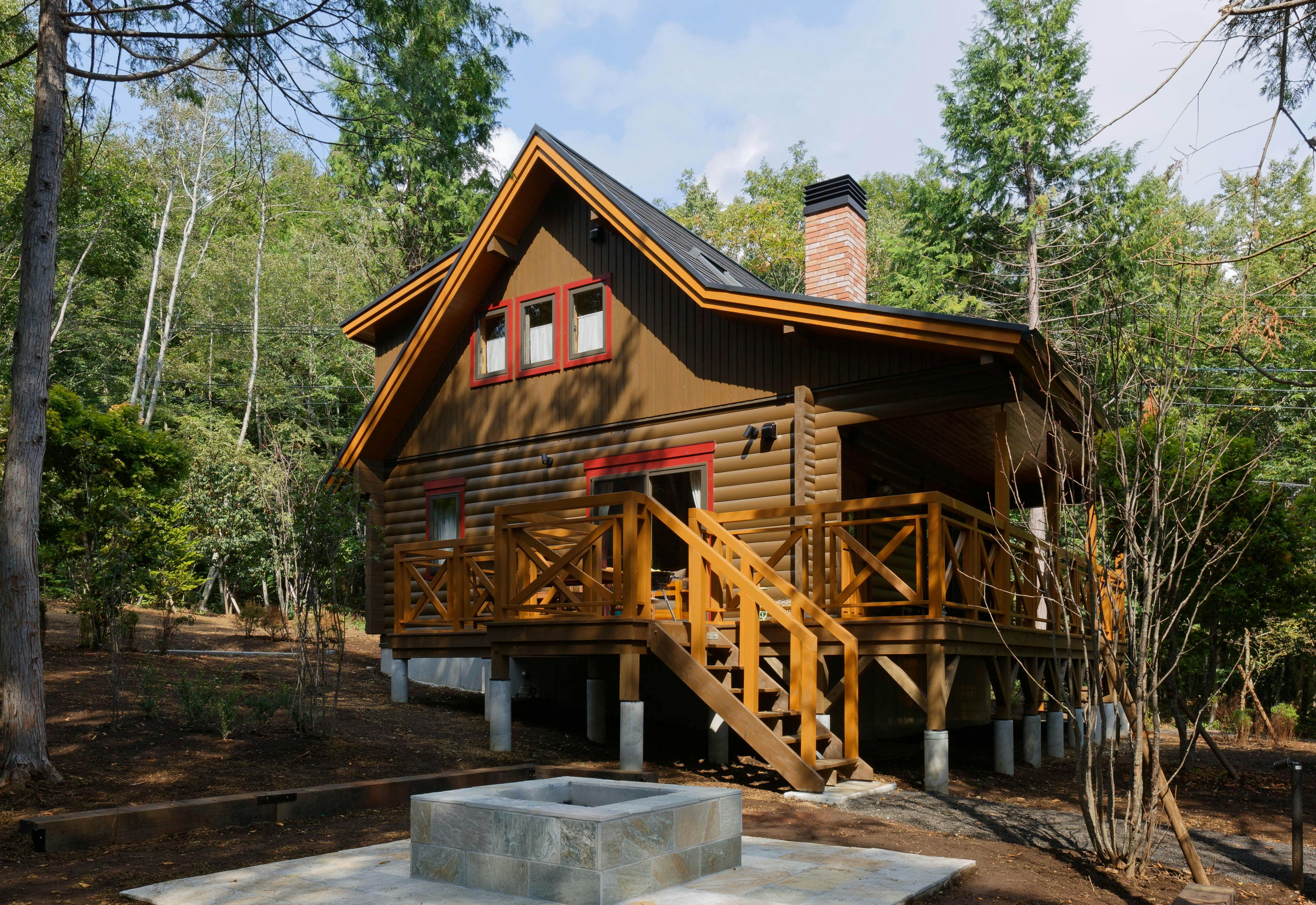 【1日2組限定】閑静な避暑地に佇む別荘感覚のコテージ。山中湖湖畔まで徒歩約1分。夕焼けや美しい星空、日暮れと共に現れる幻想的な風景が楽しめます。都会の喧騒から離れて優雅なひとときを。