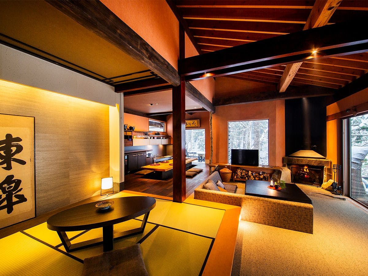 ベッド(シングル2台)、和布団(3組)、洋式お手洗い、洗面台、半露天風呂、露天風呂、シャワー室、マルチ充電器、屋外ガスグリル、暖炉(現在使用中止)、囲炉裏、ドライヤー、洗濯機、LEDランタン(2つ)