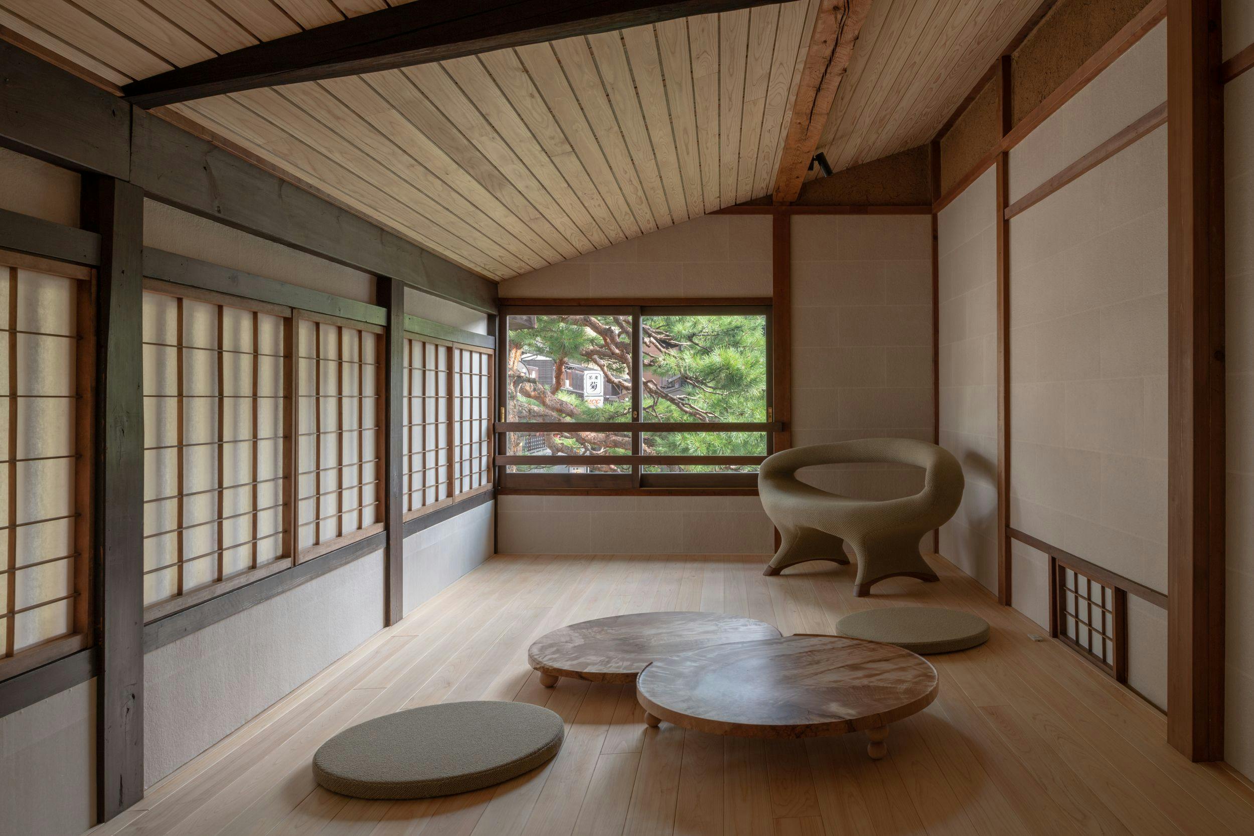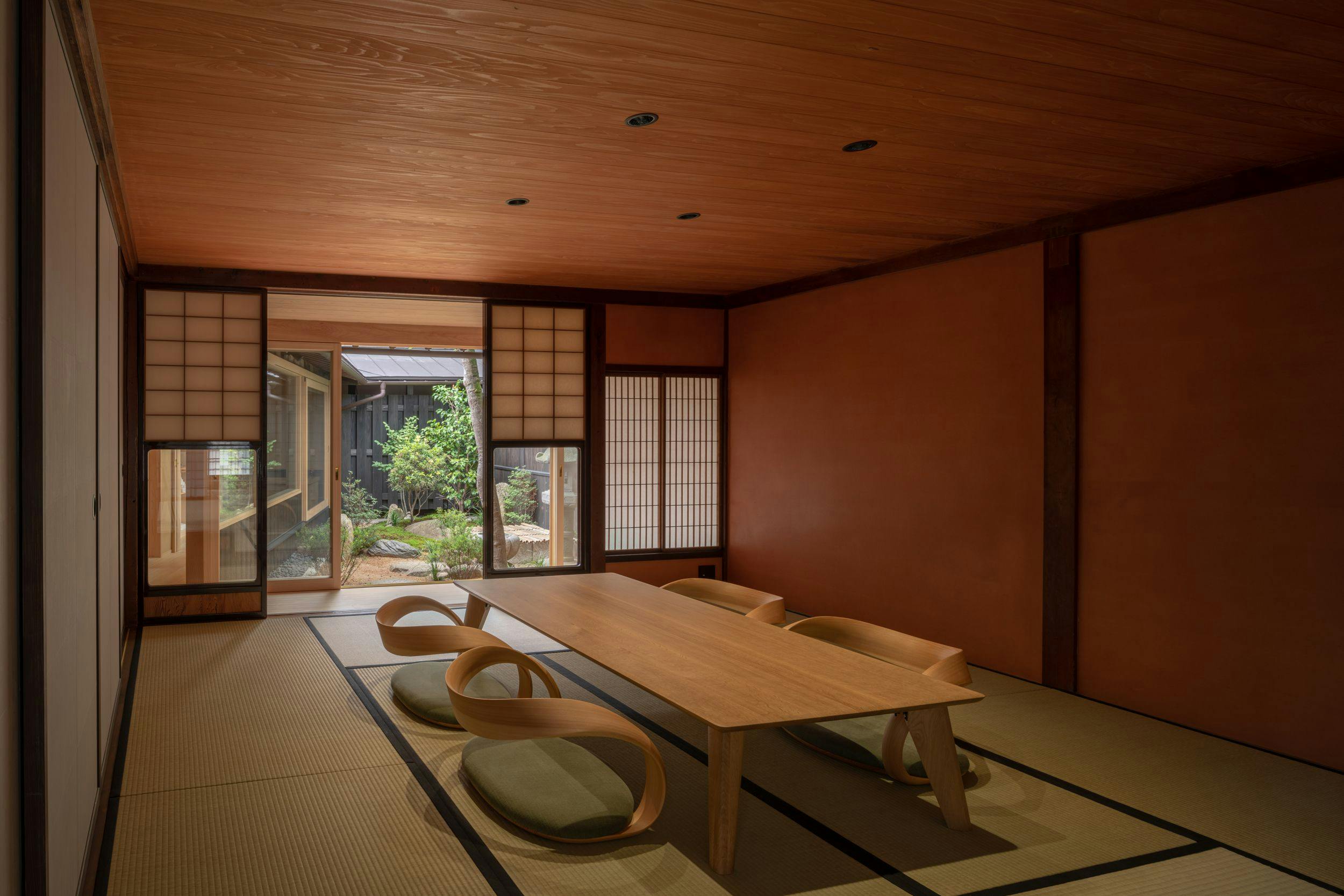 日本の原風景のひとつとも言える町家建築としての造形はそのままに、随所に現代の飛騨の匠の技が散りばめられています。しつらえには飛騨の木を贅沢に使用。自然光が注がれる中庭に面した極上の檜風呂をはじめ、空間の隅々に至るまで、心落ち着く木の香りに包まれた安らぎのひとときをお過ごしいただけます。