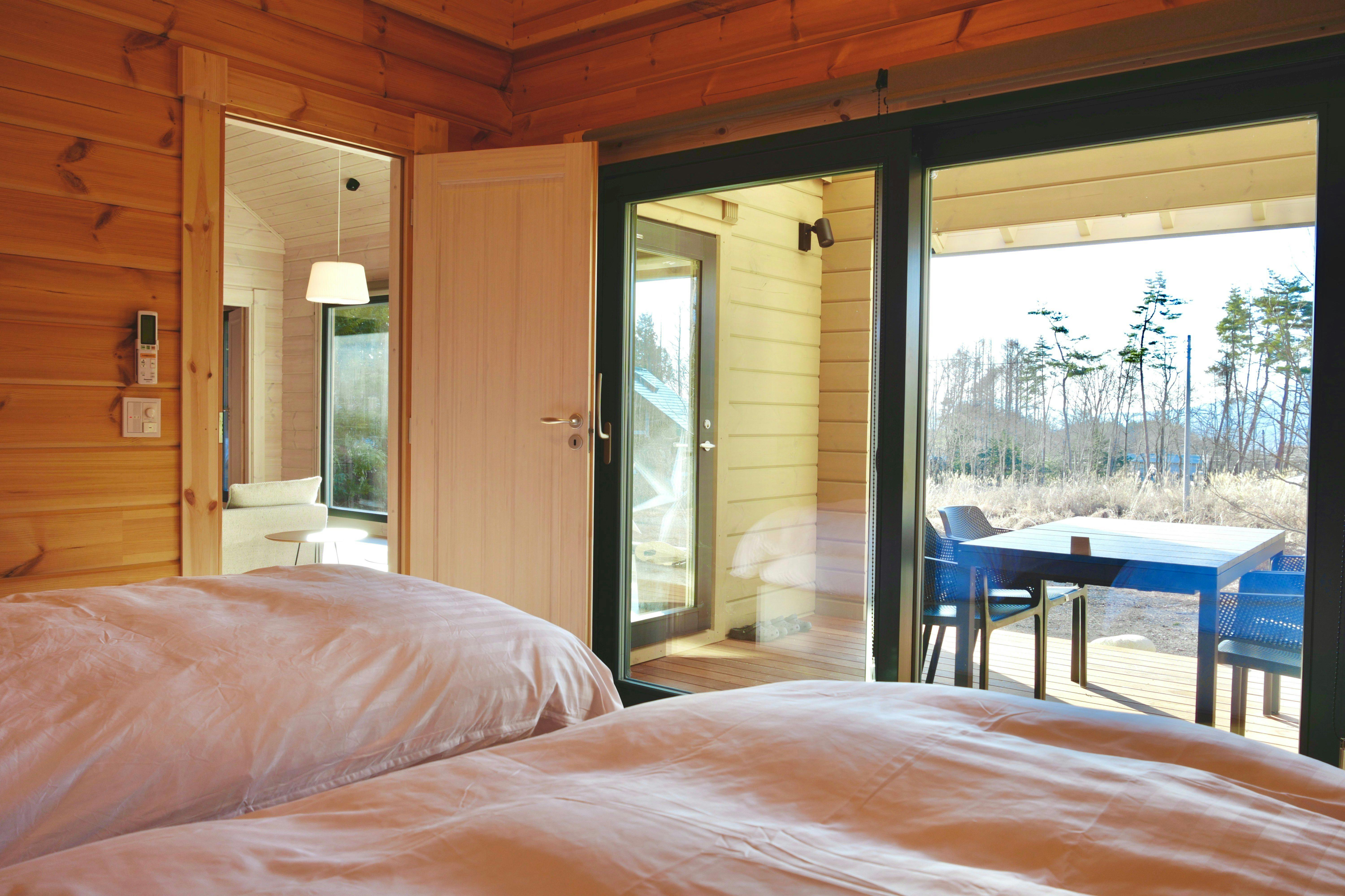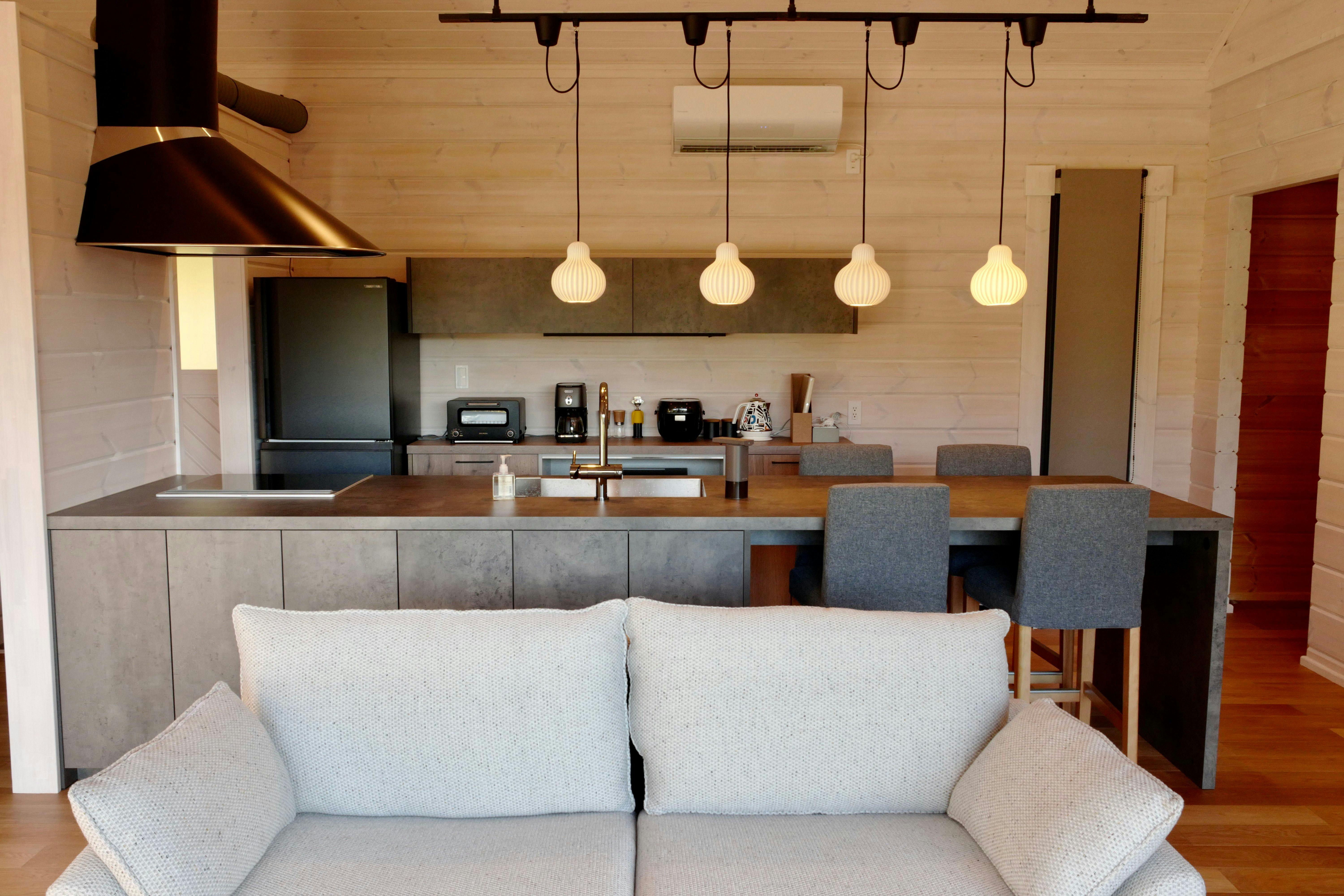 パインズコテージ 八ヶ岳 トゥースラは八ヶ岳の森に佇むラグジュアリーモダンなログハウスで、リビングの大きな窓からは甲斐駒岳がのぞめ、八ヶ岳の雄大な自然を感じながら洗練されたフィンランドログハウスの滞在がお楽しみいただけます。設備も充実していますので長期滞在でも快適にお過ごしいただけます。