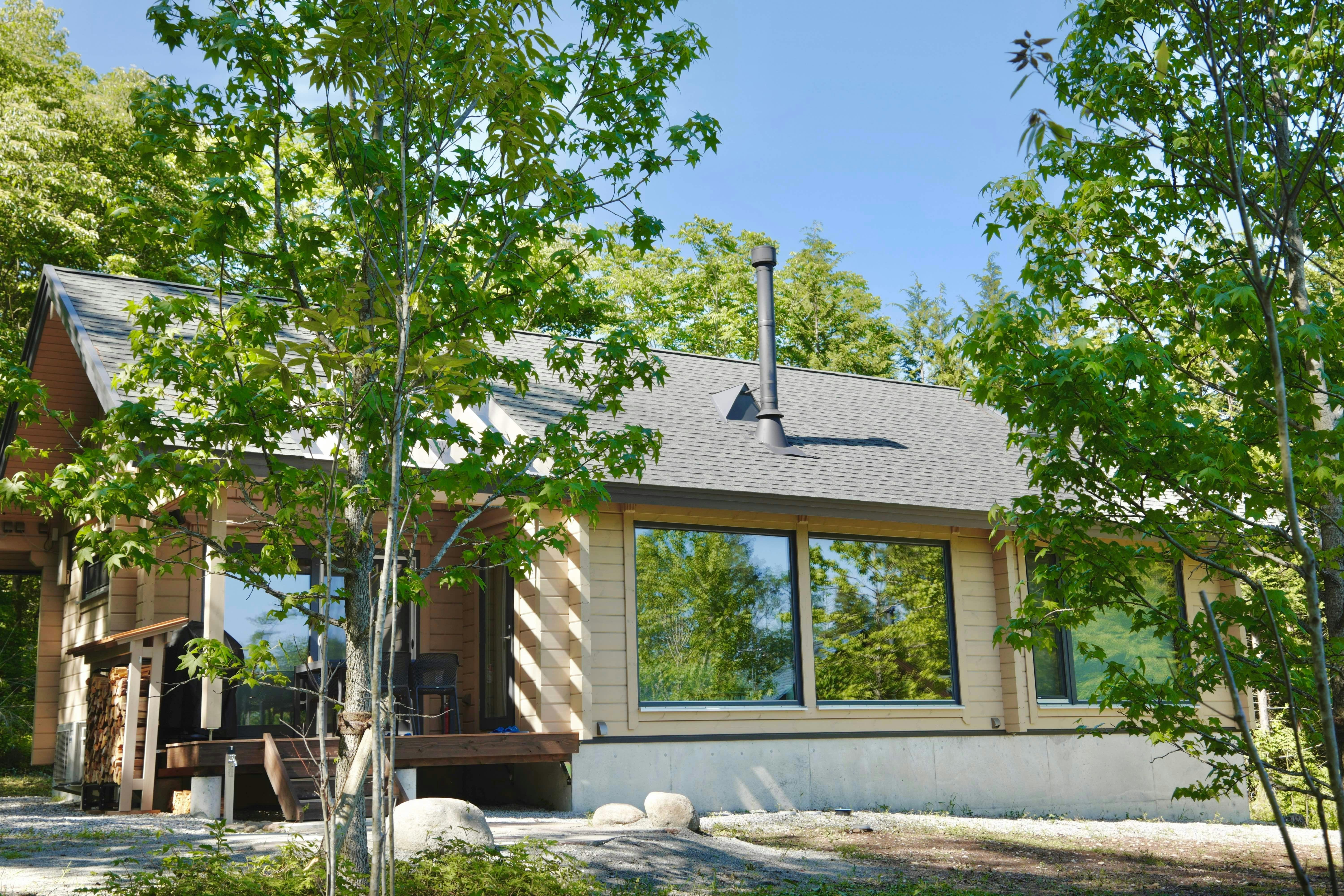 フィンランド製のモダンなプレミアムログハウス。