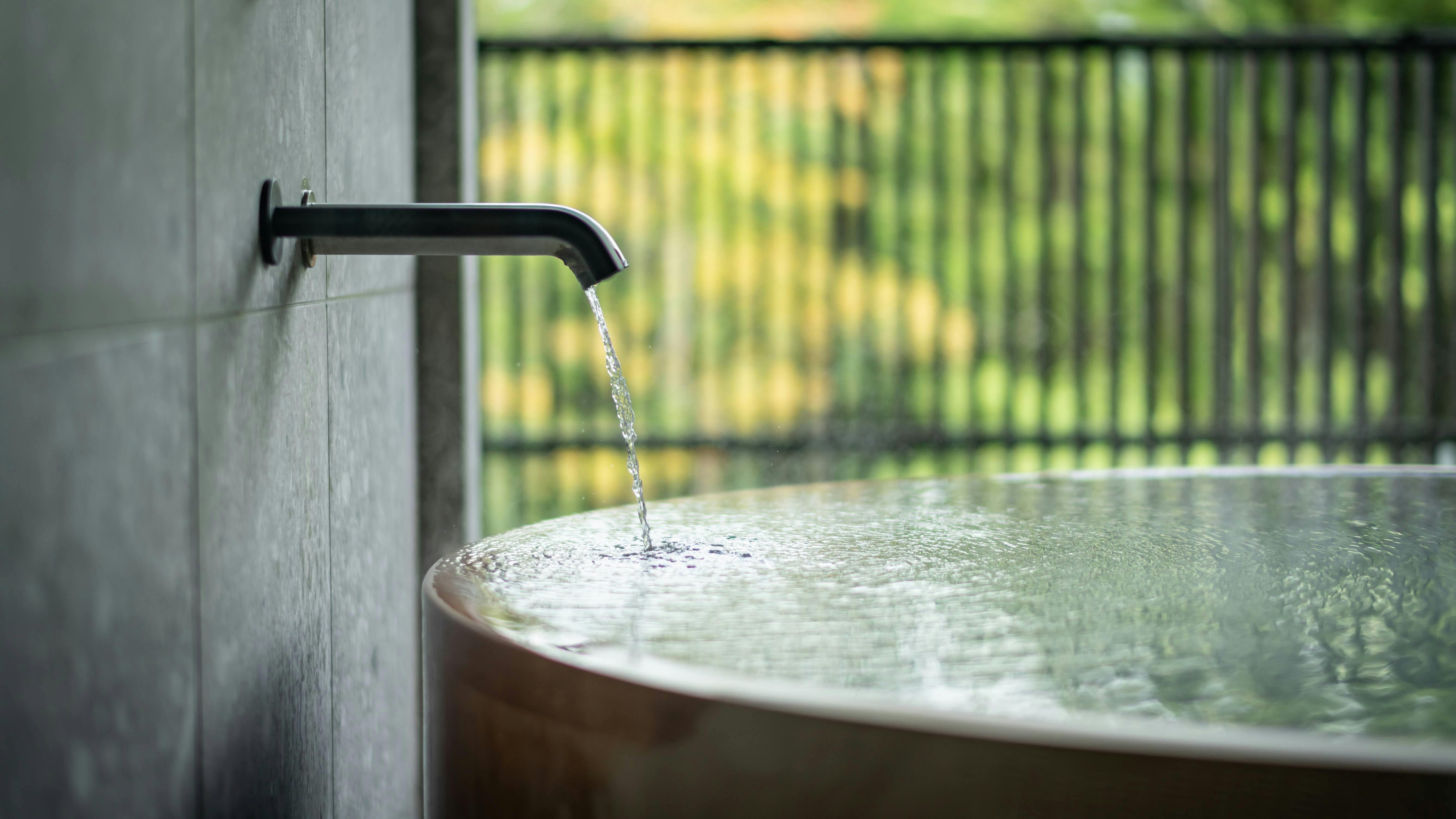 各棟には心地よい香りの檜風呂の半露天風呂があり、かけ流しの大涌谷白濁温泉が贅沢なほど注がれています。