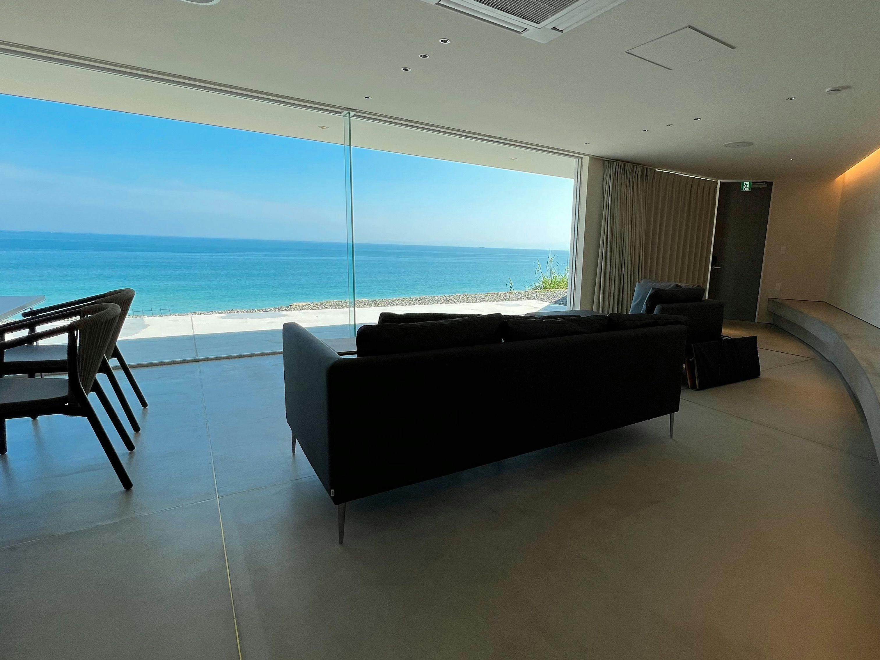 リビングには特注で製作した横幅約3m×奥行約1.25mの「ごろ寝」ソファがあり海を見ながら贅沢に過ごせます。