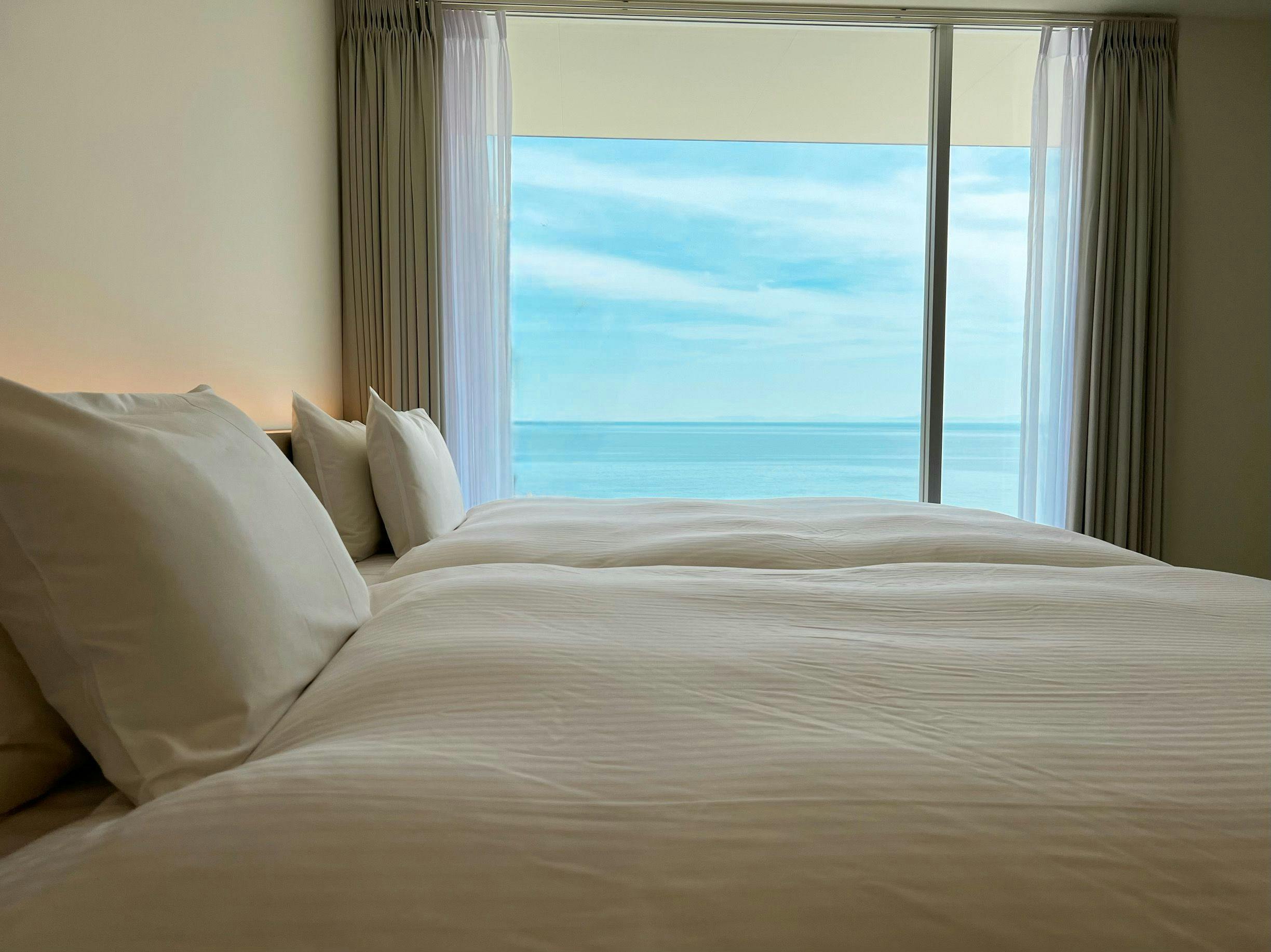 2023年6月NEWOPEN 1100平米を超える敷地に、全く異なるデザインの2棟だけの宿。ベッドルーム・リビング・お風呂・すべての部屋からオーシャンビュー