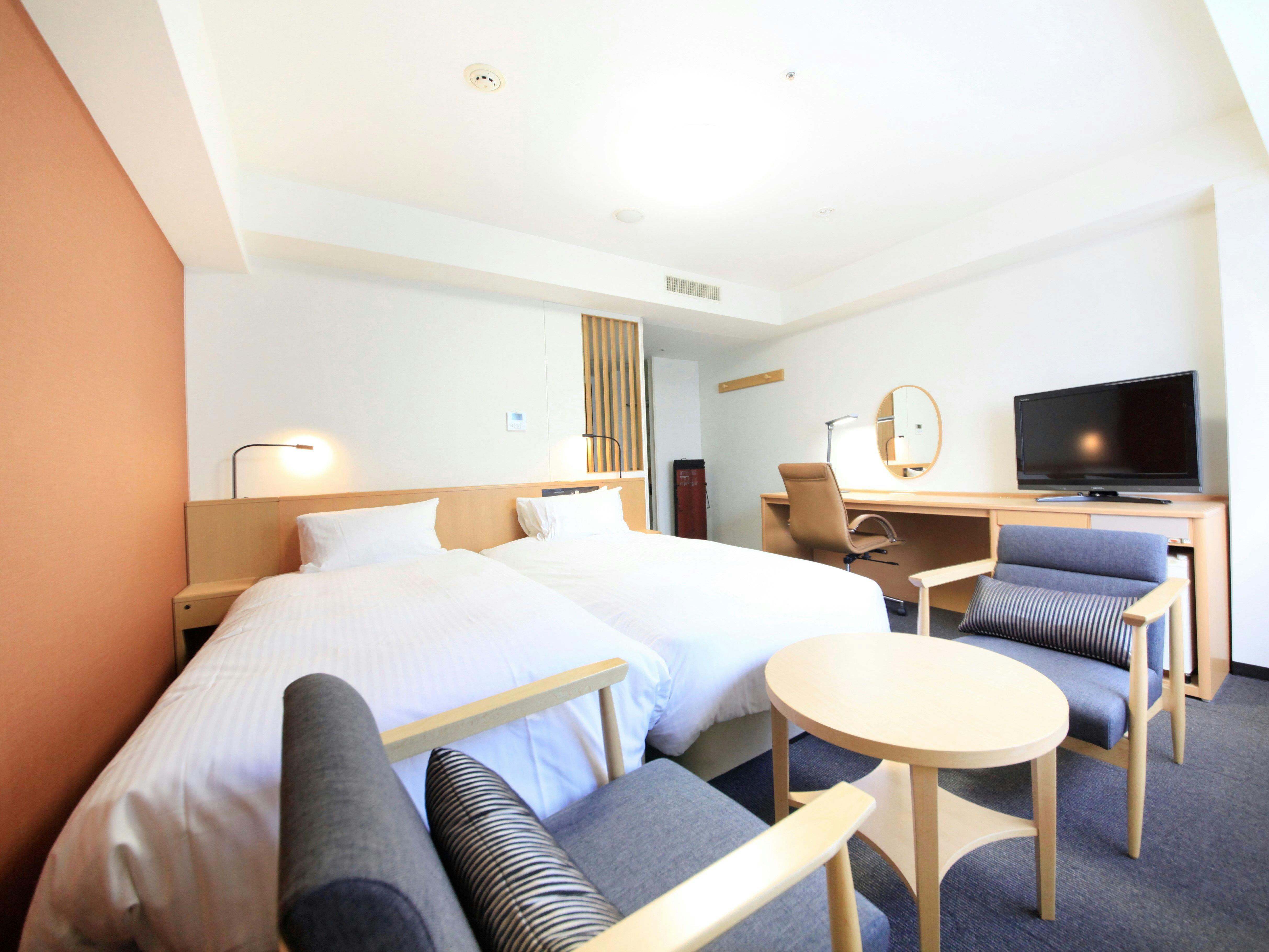 【客室案内】・客室面積24平米・シングルサイズベッド(90cm×203cm)2台・加湿機能付空気清浄機・各社対応携帯電話充電器・シャンプー、コンディショナー、ボディソープ・アメニティ(歯ブラシ、髭剃り、ヘアブラシ、綿棒、ボディタオル)・ドリップコーヒー、緑茶など・Wi-Fi接続無料