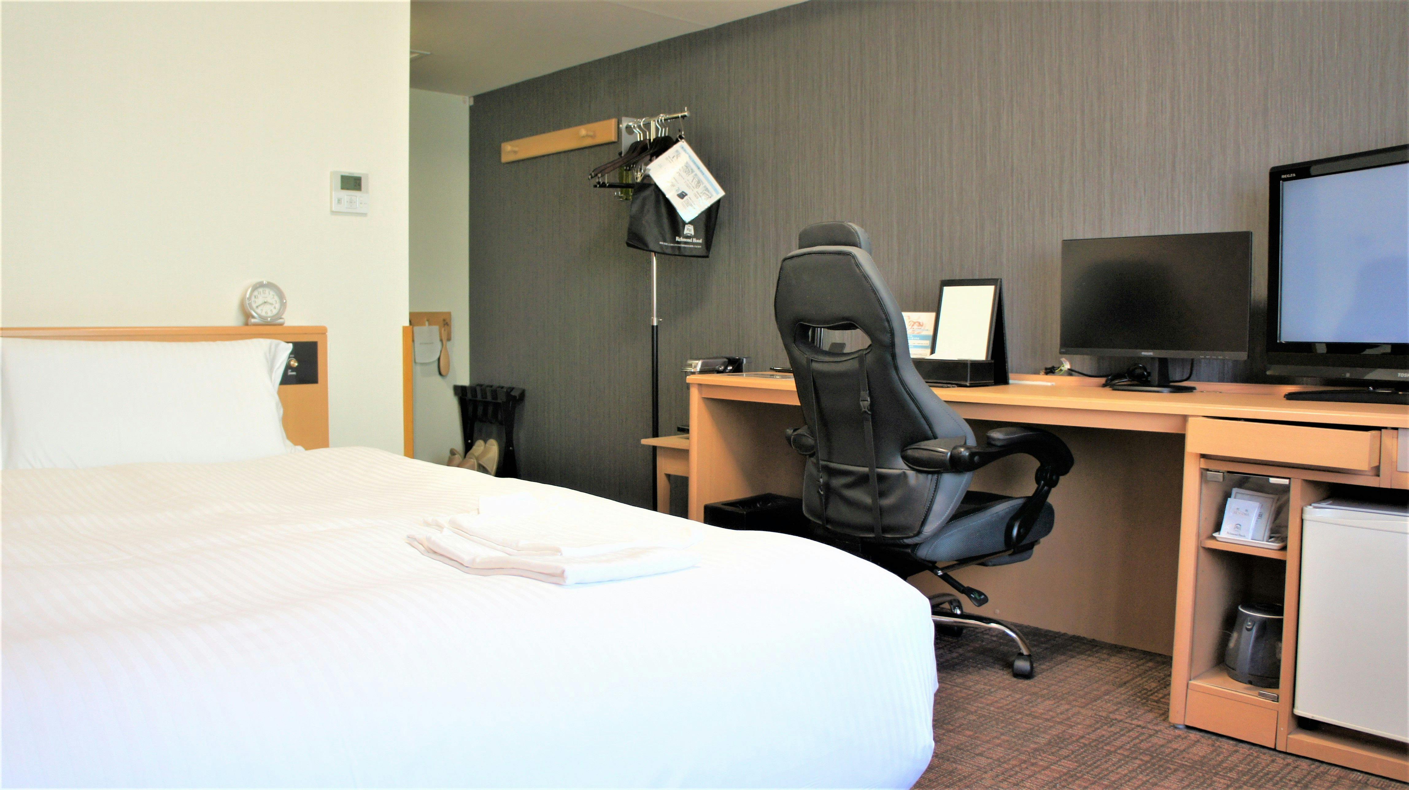 【客室案内】・客室面積18平米・ダブルサイズベッド(140cm×203cm)1台・加湿機能付空気清浄機・各社対応携帯電話充電器・シャンプー、コンディショナー、ボディソープ・アメニティ(歯ブラシ、髭剃り、ヘアブラシ、綿棒、ボディタオル)・ドリップコーヒー、緑茶など・Wi-Fi接続無料