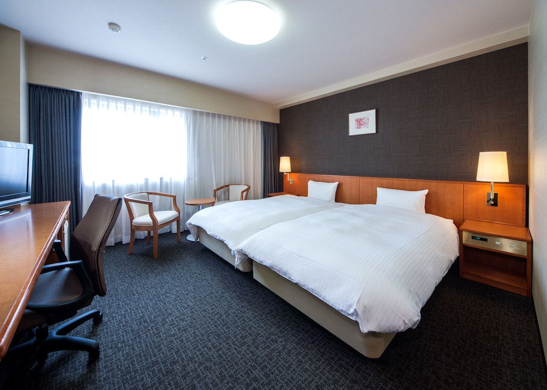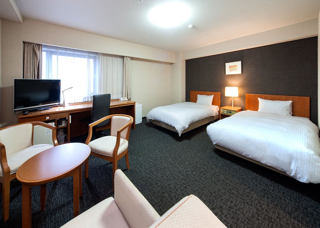<wi-fi無料接続が可能>【喫煙】ツイン 27平米・110cm幅ベット2台・インターネットLAN接続無料・空気清浄機・ミネラルウォーター・リセッシュ