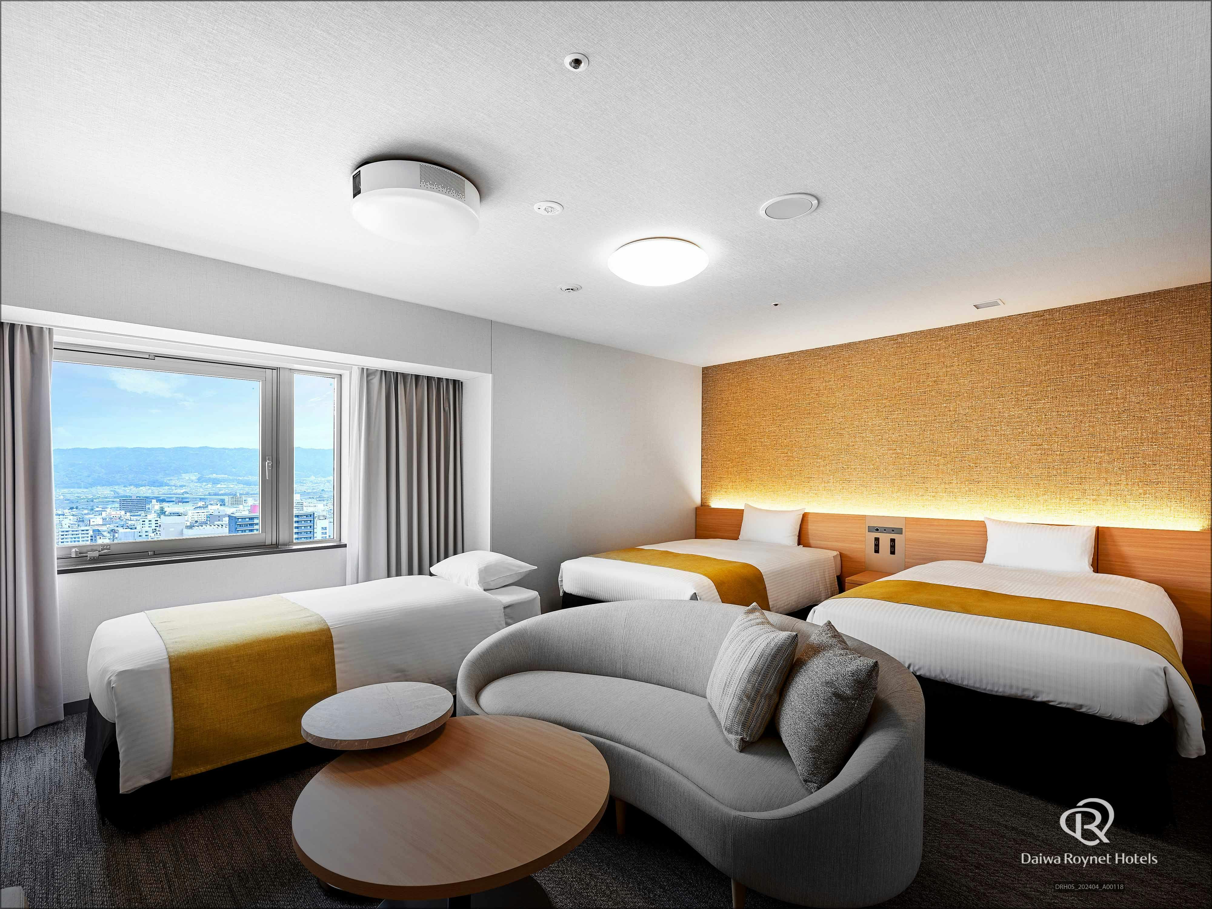 和歌山市街地側に面したお部屋で広く明るい35平米の客室、幅120cmベッドを2台使用エキストラベット設置で3名ファミリー向け客室として使用可全室インターネット無料接続(有線&Wi-Fi)お仕事に便利なロングデスクとディレクターズチェアを設置空気清浄機・消臭剤もご用意いたしております※添い寝に関しましては大人のお客様1名に対し、添い寝1名までとなります。