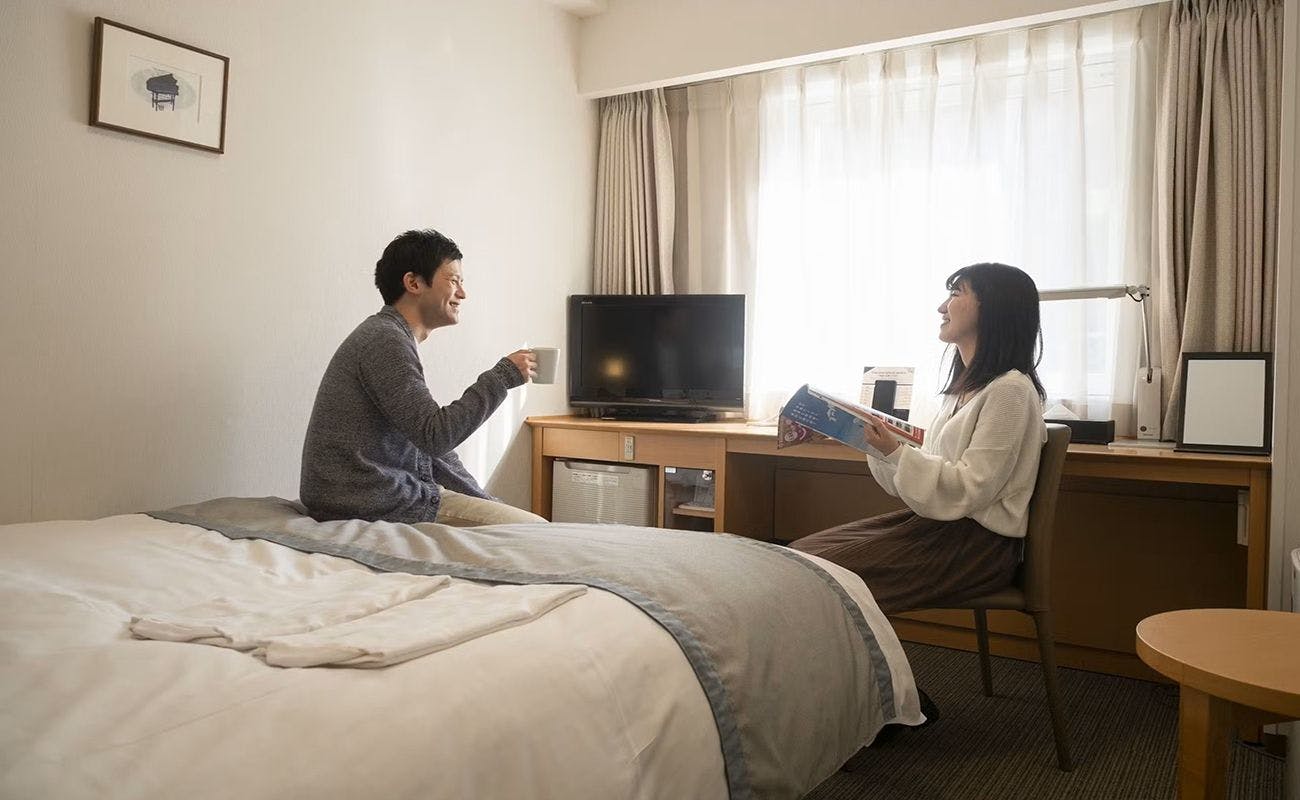 心をこめたサービスと充実の設備で安心・快適なステイを。広々客室でワイドベッド!豊富なアメニティが嬉しい!全室WiFi無料接続可能