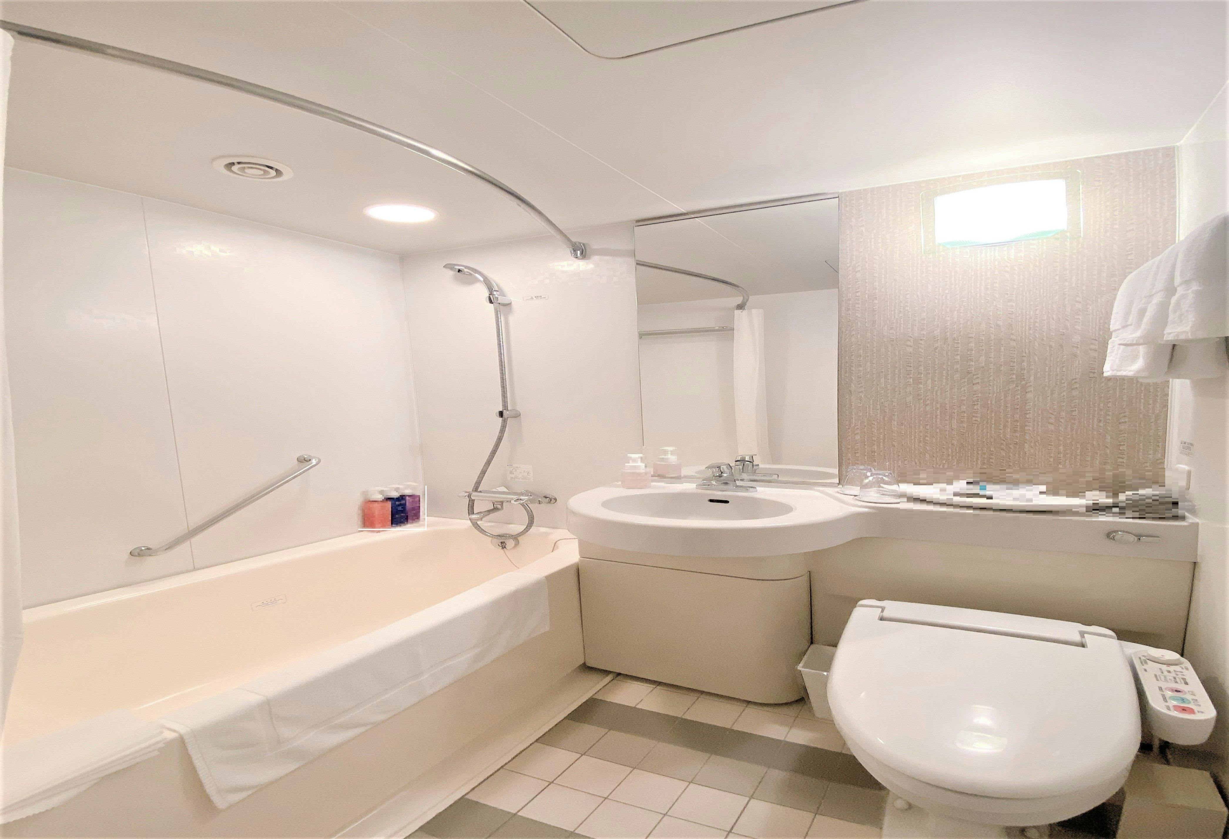 ・ベッドサイズ 161cm×203cmのダブルベッド・テレビ 液晶テレビ40型・大型デスク・冷蔵庫(中は空の状態)・加湿機能付空気清浄機・ズボンプレッサー ・ポット ・個別空調 ・消臭スプレー・Wi-fi無料接続可能