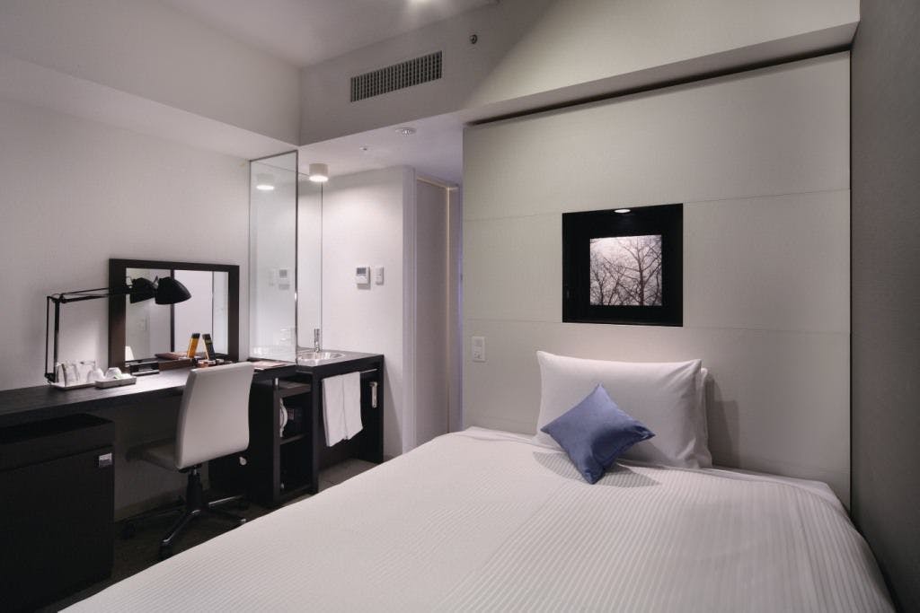 <wi-fi無料接続が可能>11階レディースフロア指定。(禁煙ルーム)バス、トイレ、洗面台が独立。ベッド幅は140cm。ビジネスユースにも最適のワイドカウンター、キャスター付きイス、デスクライトを設置。カードキーによるセキュリティーシステムで安心ステイ