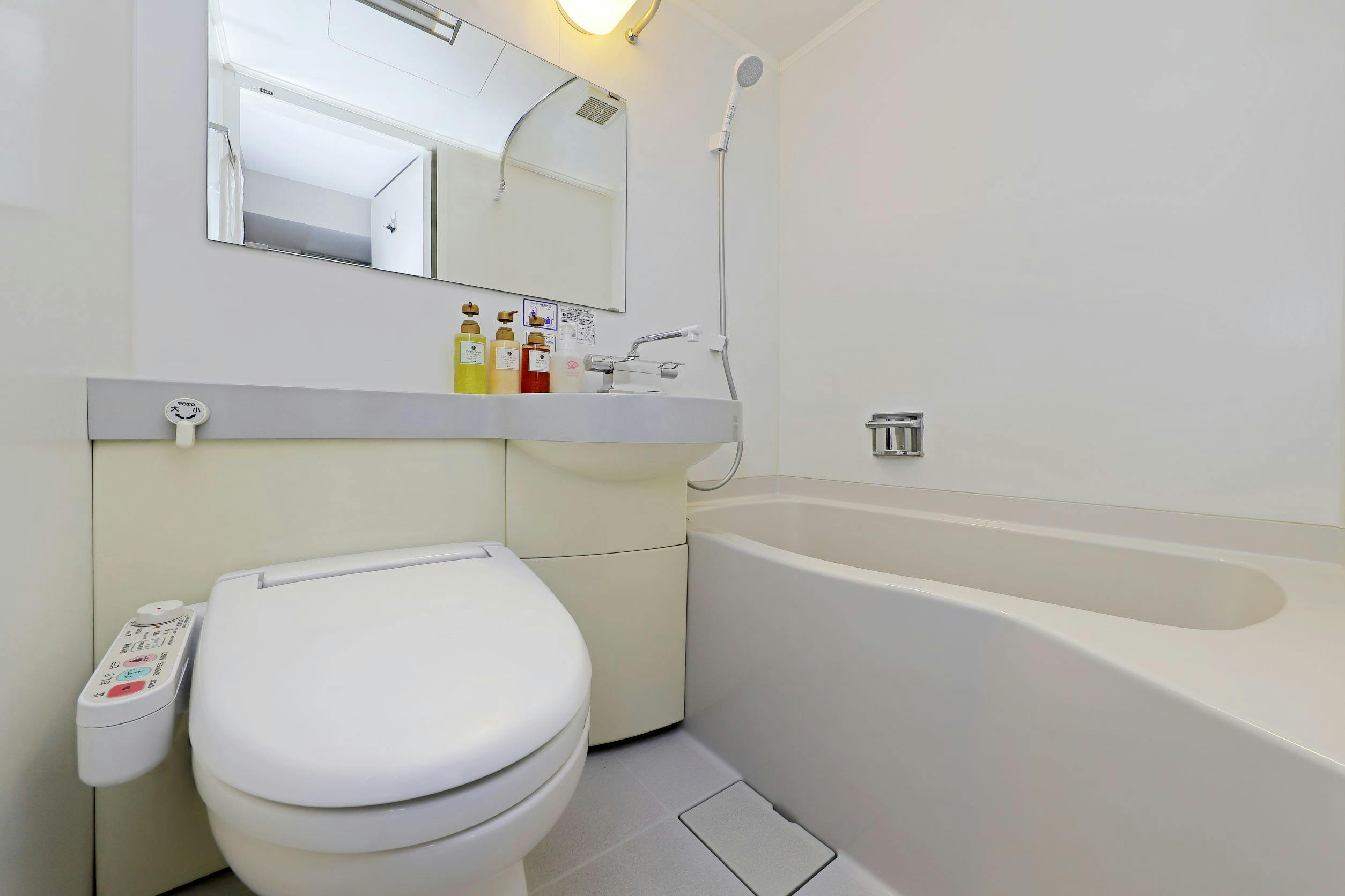 <wi-fi無料接続が可能>遮音性の高いペアガラス窓や高密度スプリングのセミダブルベッドを採用し、徹底して快適な眠りの環境を追及しています。冷蔵庫、ドライヤー、洗浄機能付トイレなどの設備をご用意して、快適なご滞在をサポートいたします。※ハブラシ、お茶、カミソリ、綿棒、ヘアブラシ等のアメニティはフロントにご用意しております。