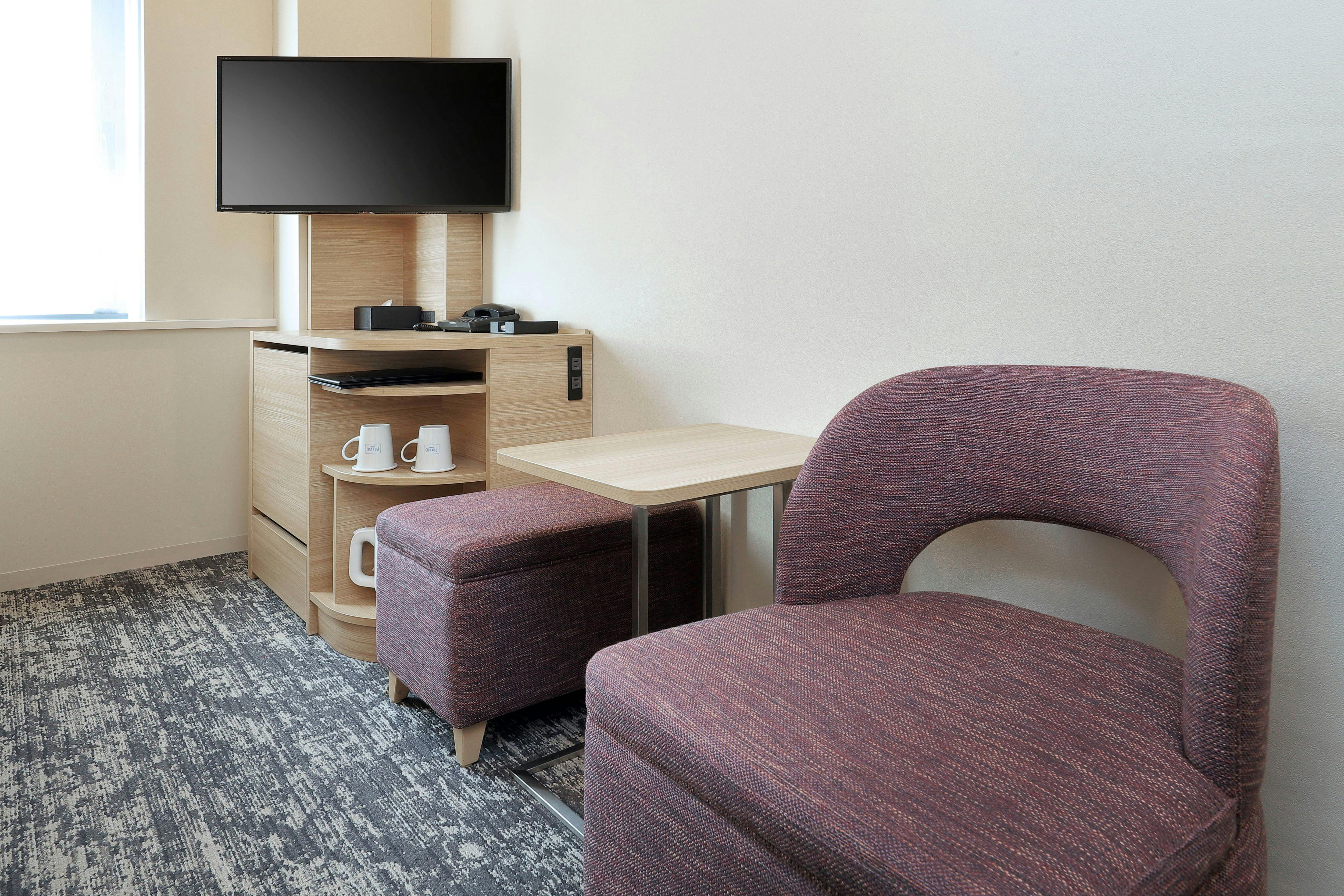 <wi-fi無料接続が可能>遮音性の高いペアガラス窓や高密度スプリングのセミダブルベッドを採用し、徹底して快適な眠りの環境を追及しています。冷蔵庫、ドライヤー、洗浄機能付トイレなどの設備をご用意して、快適なご滞在をサポートいたします。歯ブラシ、カミソリ、綿棒、ヘアブラシ等のアメニティはフロントにご用意しております。