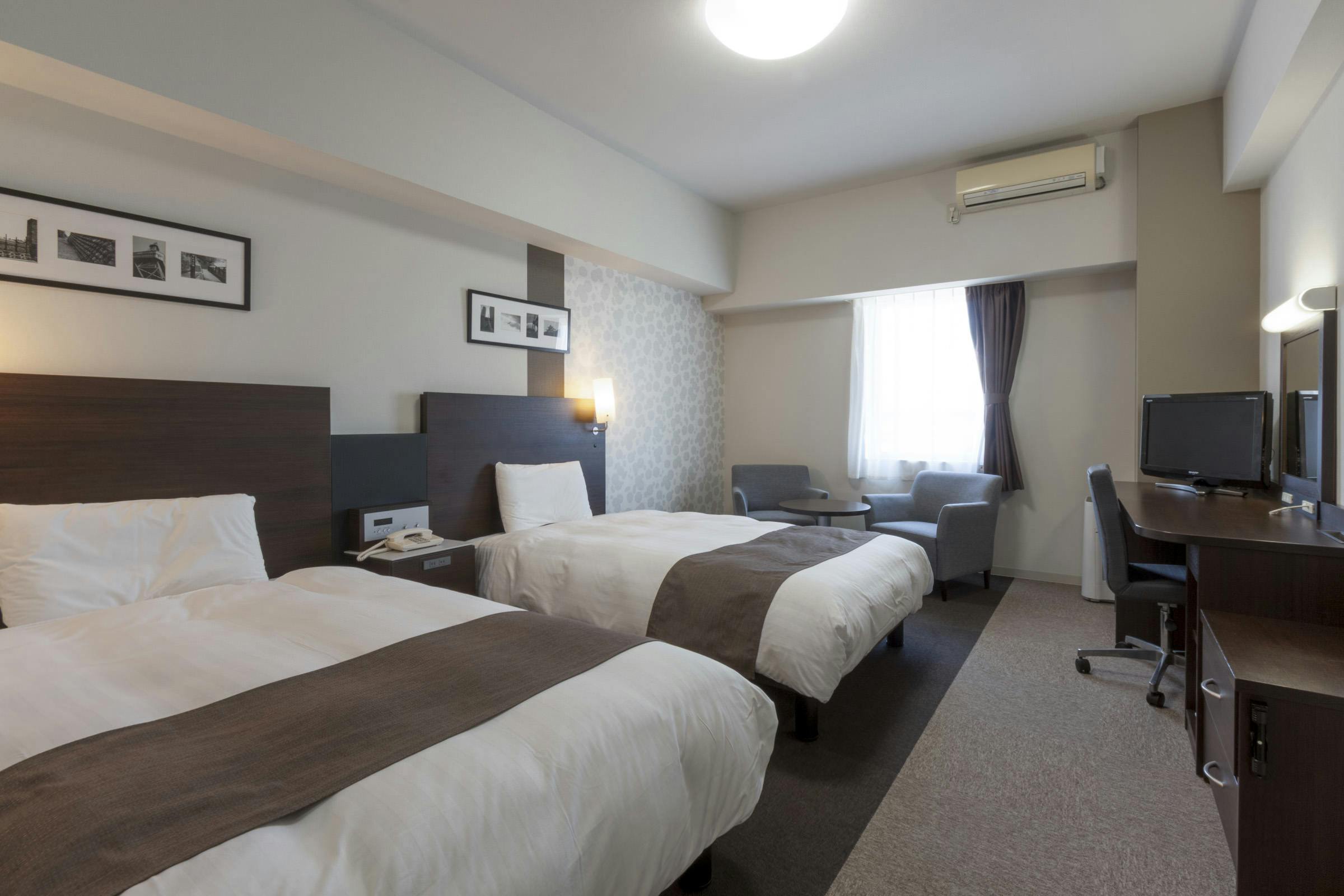 広さ20平米、ベッド幅123cm×2台インターネット環境は有線LAN&Wi-Fi無料接続が可能!