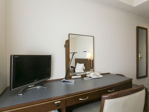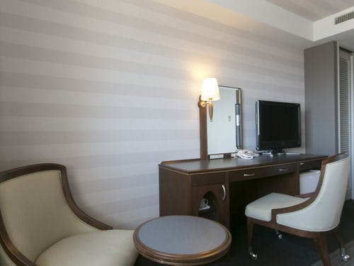 18平米、140cm幅ベッド、エアウィーヴマットレス導入、マッサージ機能付きチェア、折りかさね枕、バス・洗浄機付トイレ、液晶テレビ、WI-FI&有線LAN接続