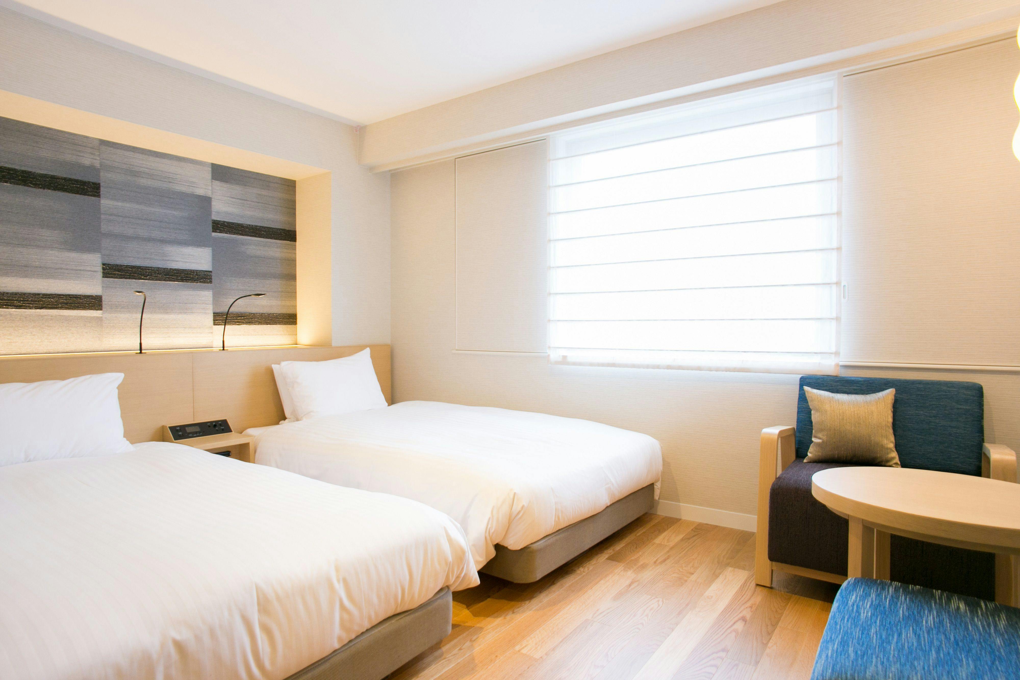 禁煙セミダブルルーム(シングルルーム2名様利用)【常設備品】加湿空気清浄機・デスクスタンド・消臭スプレー・ドライヤー・ボディーソープ・シャンプー・コンディショナー・セーフティボックス・マッサージクッション・ミネラルウォーター・ポット・お茶・コーヒー【設備】ウォシュレットトイレ・ユニットバス・液晶テレビ・冷蔵庫・インターネット(有線・無線LAN)■広さ:14.6平米■ベッドサイズ:ダブルベッド(幅140cm×長さ210cm) 1台