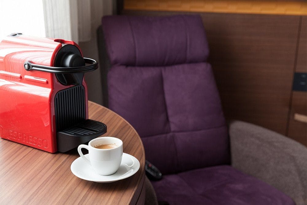 仕事の合間に、ネスプレッソのコーヒーとマッサージチェアをどうぞ。落ち着いた雰囲気の客室でお寛ぎください。【室内備品】マッサージチェア・ネスプレッソコーヒーメーカーズボンプレッサー【バスルームタイプ】シャワーブース(バスタブなし)