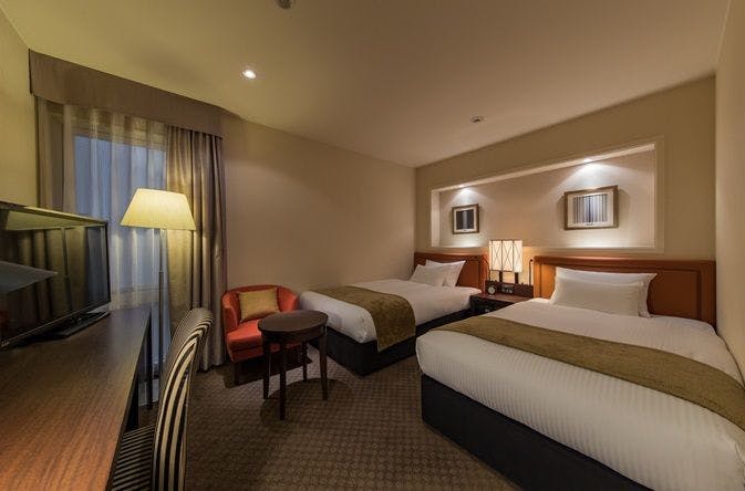 ■44平米の客室に120cmのサータ社製ポケットコイル式ベッド×2台■布団は清潔で締めつけ感のないデュベ(羽毛布団)を使用■保温効果抜群!ビジネスホテル最高級クラスの“鋳物ホーロー浴槽”■全客室Wi-Fi完備■加湿空気清浄機■セーフティボックス