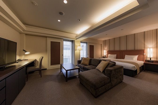 ■21平米の客室にゆったりとした160cmのサータ社製ポケットコイル式ベッド■布団は清潔で締めつけ感のないデュベ(羽毛布団)を使用■保温効果抜群!ビジネスホテル最高級クラスの“鋳物ホーロー浴槽”■全客室Wi-Fi完備■加湿空気清浄機■セーフティボックス