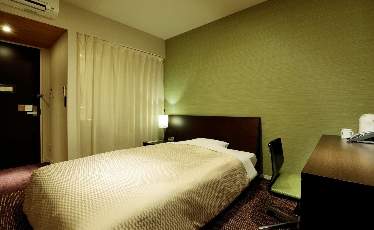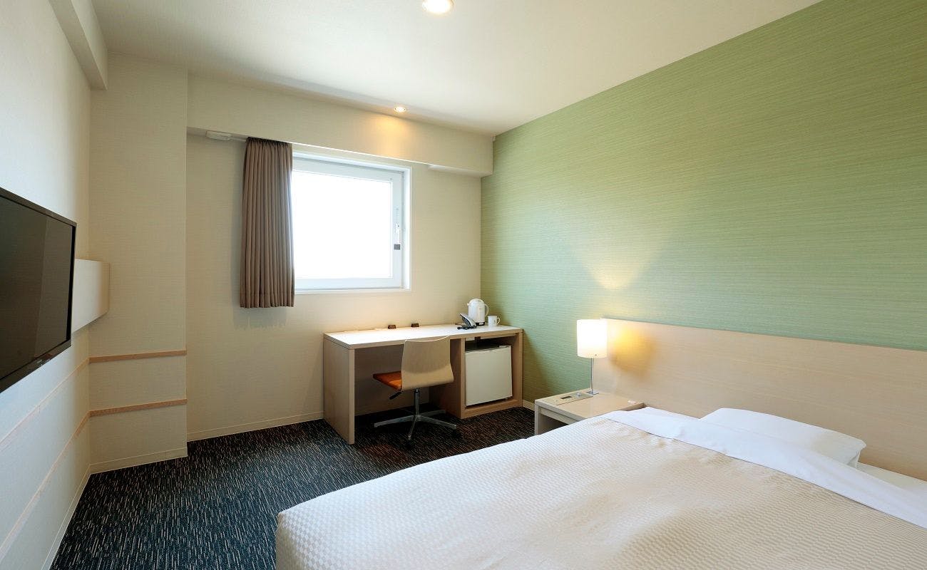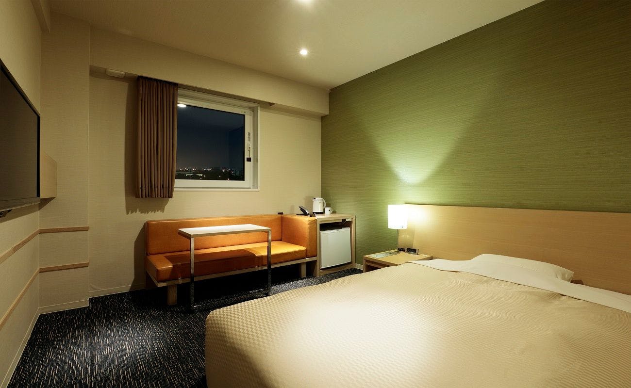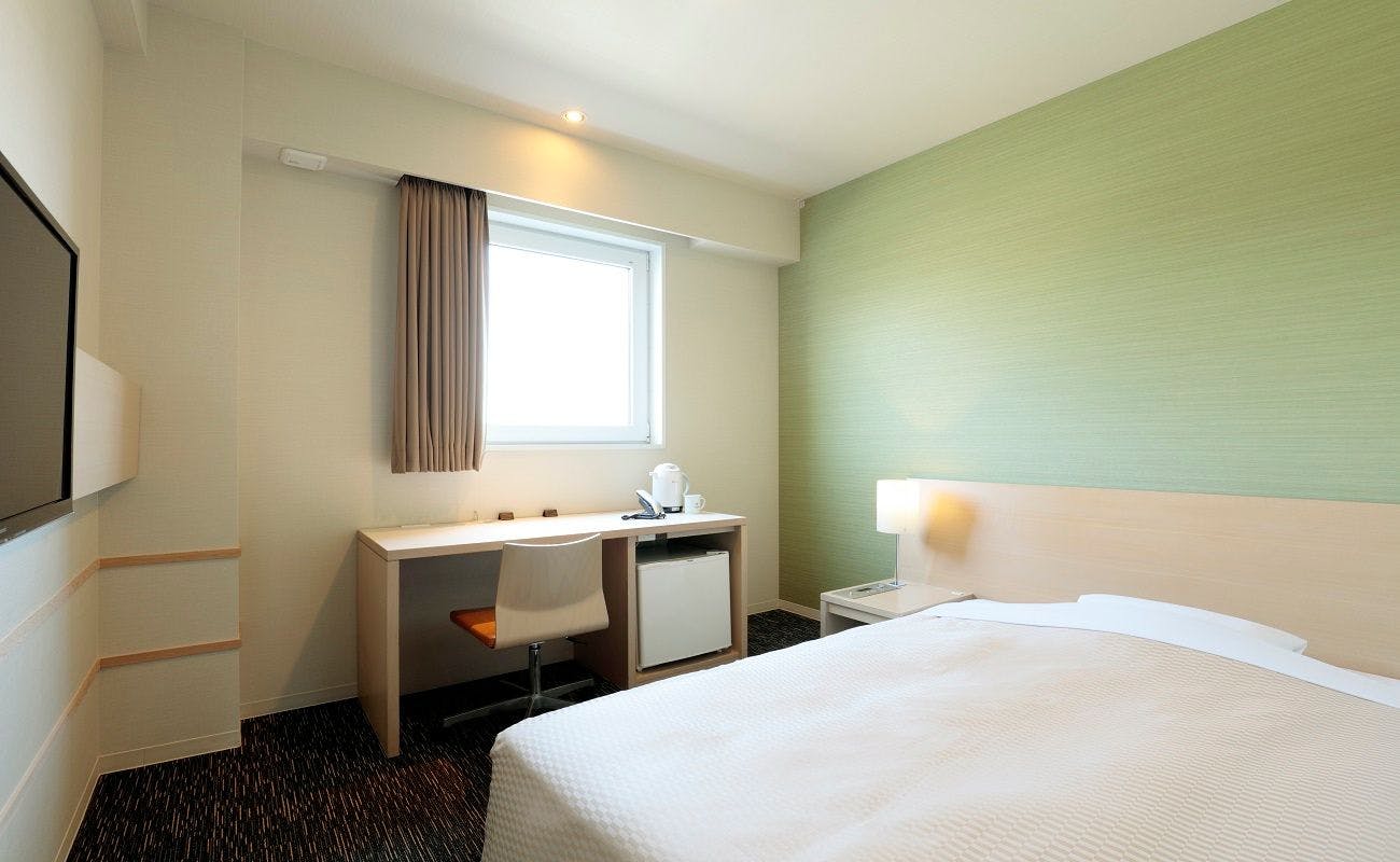 【禁煙/約14平米ダブル】■バス・シャワー無、温水トイレはカーテン仕切りの広々空間設計■シモンズ社製ベッド(140cm)■デスク■20型TV■無料LAN