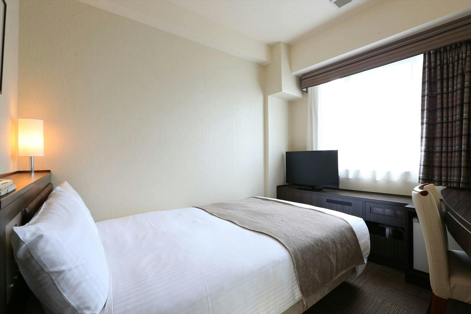 ベッド幅140cmでひろびろ。【納得のいく客室設備(全室対応)】・シモンズ社製ベッド デュベスタイル(羽毛布団をシーツで包み込んでいます)・地デジ対応BS液晶テレビ・部屋が明るいシーリングライト・有線LAN完備・リセッシュ(消臭スプレー)設置
