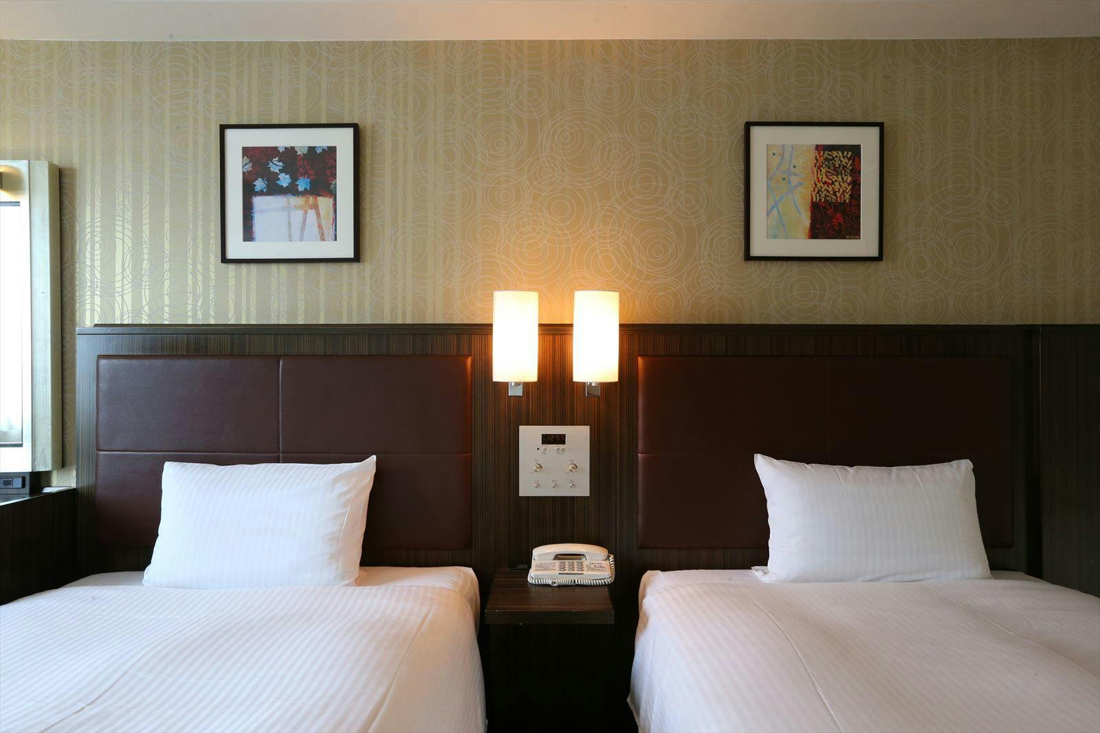 ベッドが2台でご家族でどうぞ。【納得のいく客室設備(全室対応)】・シモンズ社製ベッド デュベスタイル(羽毛布団をシーツで包み込んでいます)・地デジ対応BS液晶テレビ・部屋が明るいシーリングライト・有線LAN完備・リセッシュ(消臭スプレー)設置