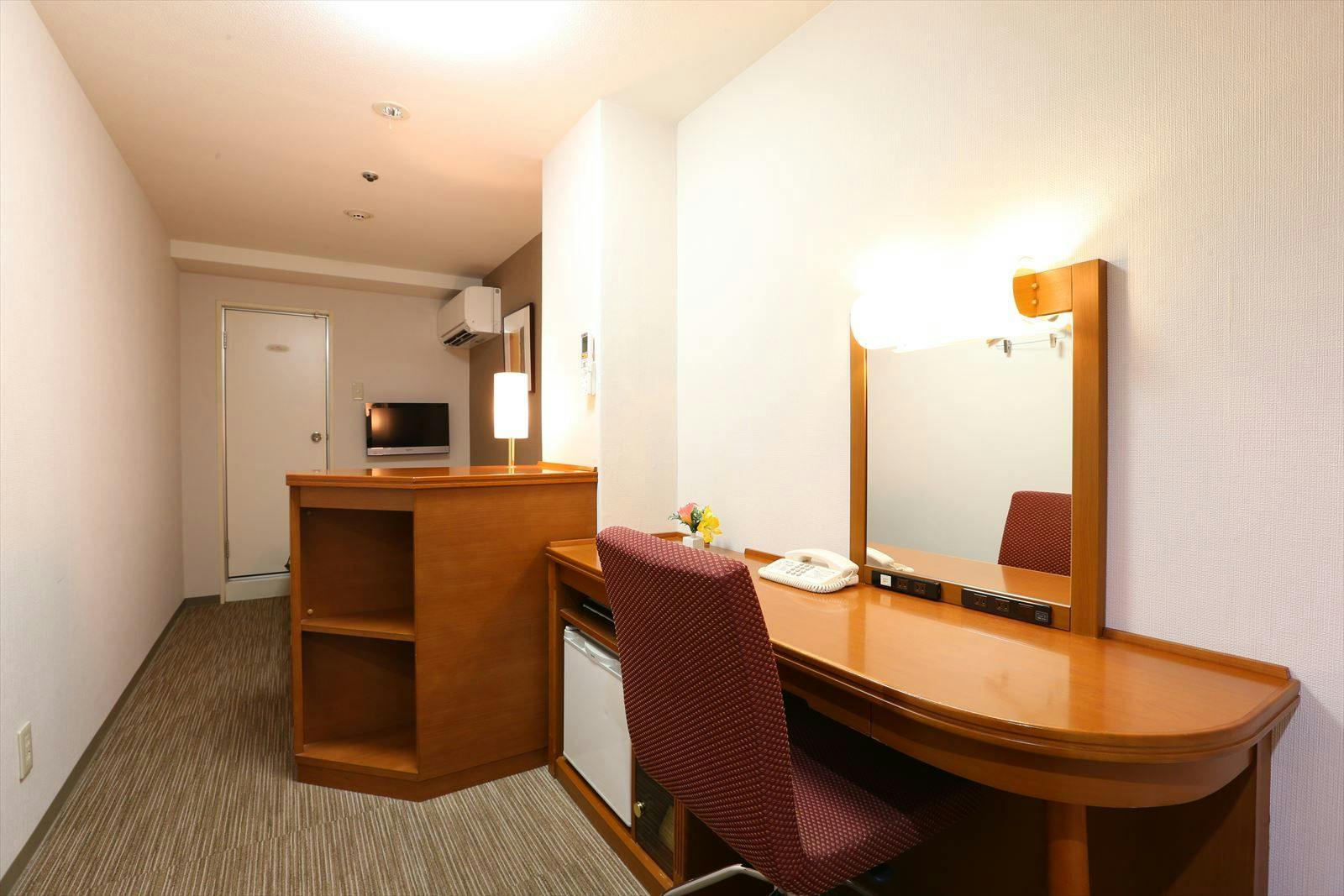 シャワー付トイレ、デュペスタイル寝具、個別空調、WiFi(LAN接続無料)、冷蔵庫、明るいシーリングライト、マイナスイオンドライヤーなど設備は通常のお部屋と一緒ですが、窓がありません。お部屋は通常タイプよりも若干広く、デスクワークに最適!館内の大浴場、OAコーナー、ランドリーコーナーはどなたでもご自由にご利用頂けます。