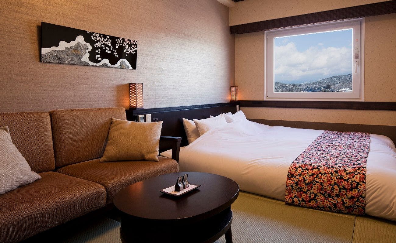 高山駅から徒歩約5分に位置し、観光に便利な「和」のシティホテル。高山市街最高層の展望温泉大浴場からは雄大な北アルプスを一望。館内は全館畳敷きで、素足の心地よさと寛ぎのひと時を感じていただけます。