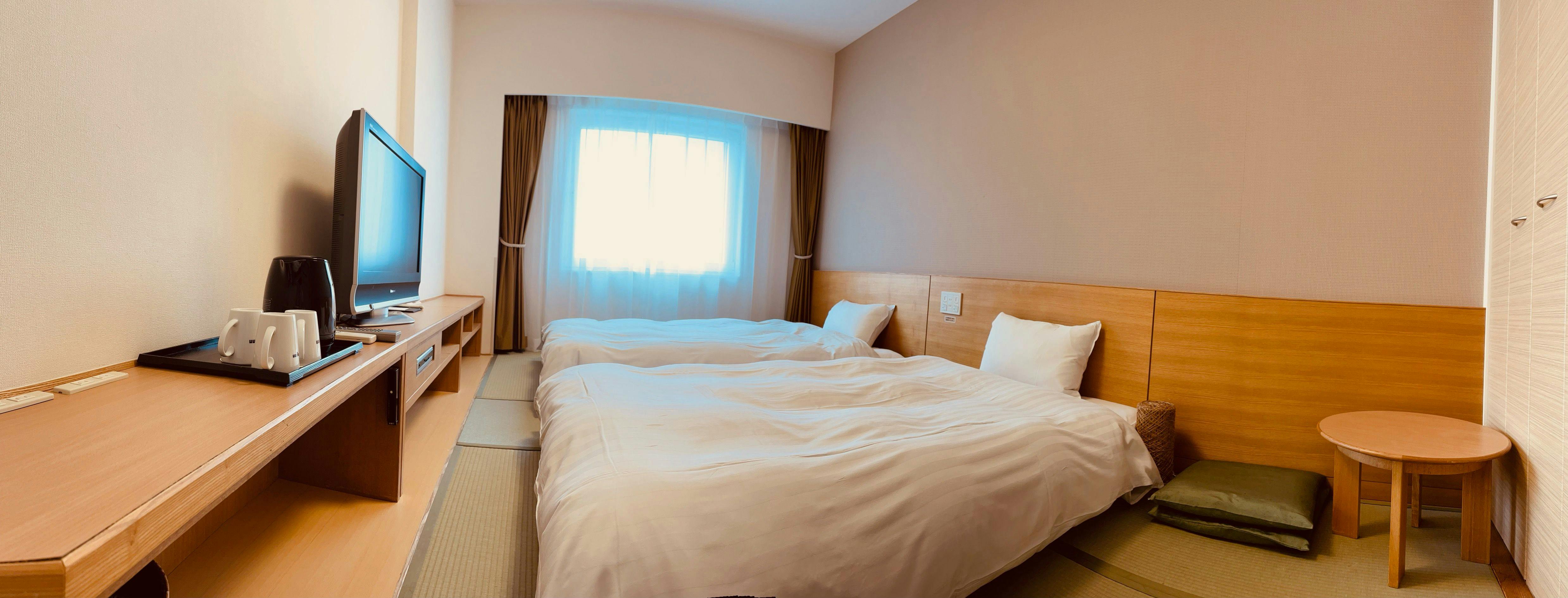 和ベット1100×2000×2台、和布団950×2000×1台温水洗浄機付トイレ羽毛布団※お部屋には湯舟はございません。シャワーーブースのみとなります。