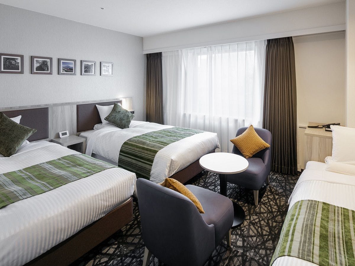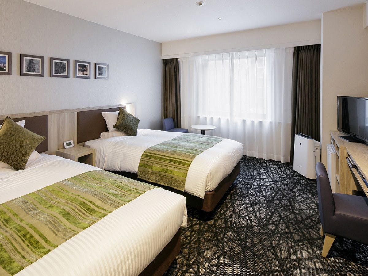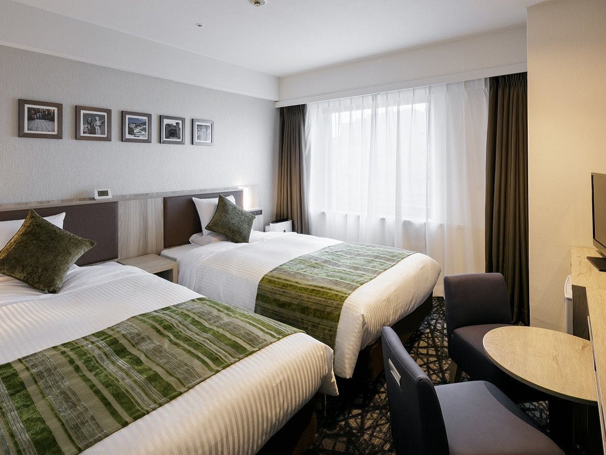 ベッド幅:110センチ×2台・3名様のご利用時はエキストラベッドでの対応となります。空気清浄機、WI-FI完備、テレビ(BS非対応)
