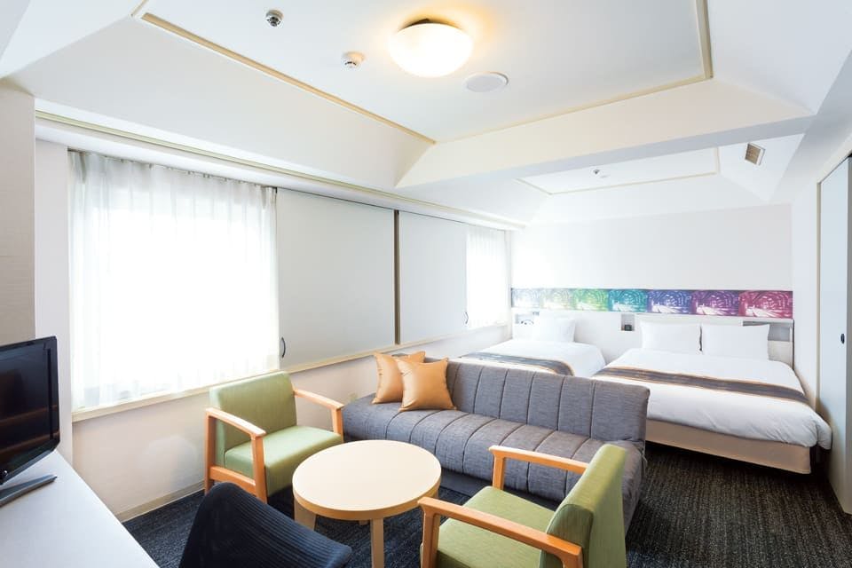 広さ32.4平米の当ホテルで最も広いお部屋です。3名様でご利用の場合は、ソファーをエキストラベッドとしてご用意いたします。レジャーやビジネスなど様々なシーンでお使いいただけます。窓は開閉可能(縦すべり出し窓、20cm程)です。
