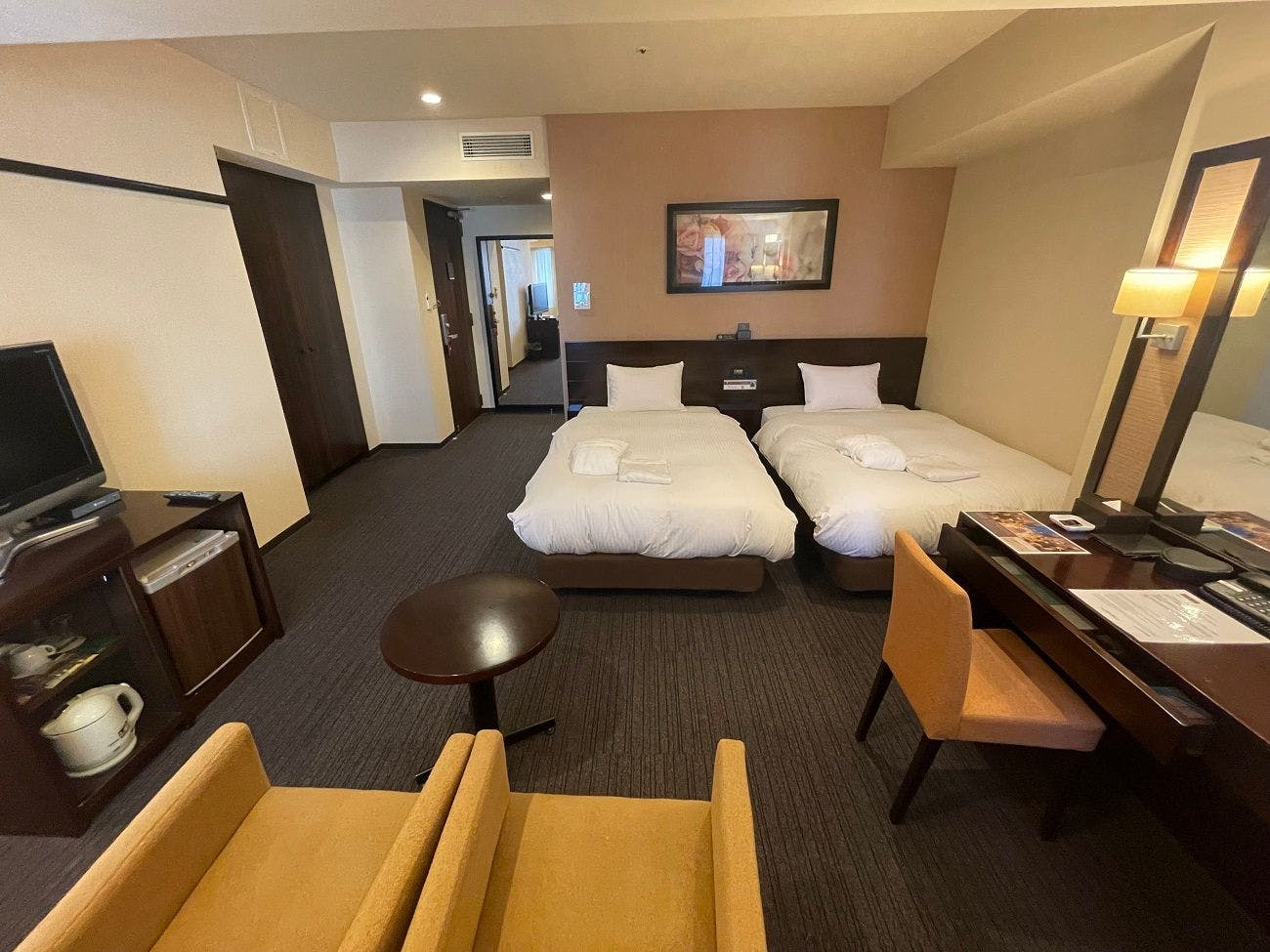 ミネラルウォーターとカップコーヒーセットの無料サービス、スリッパは清潔感や肌触りを重視したお客様専用の使い捨てタイプをご用意させて頂きました。インターネットは高速有線LAN回線を無料でご利用頂けます。地上デジタル放送対応の薄型液晶テレビ、VODシステム(有料)、無線(Wi-Fi)も完備しています。