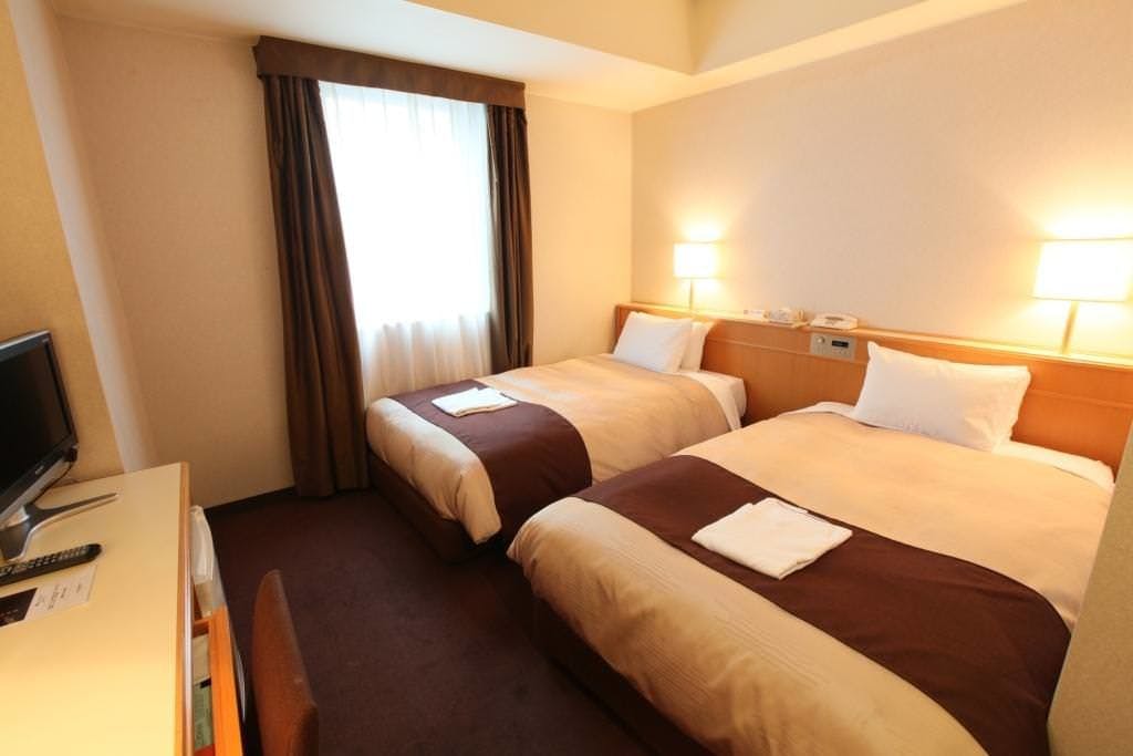 ミネラルウォーターとカップコーヒーセットの無料サービス、スリッパは清潔感や肌触りを重視したお客様専用の使い捨てタイプをご用意させて頂きました。