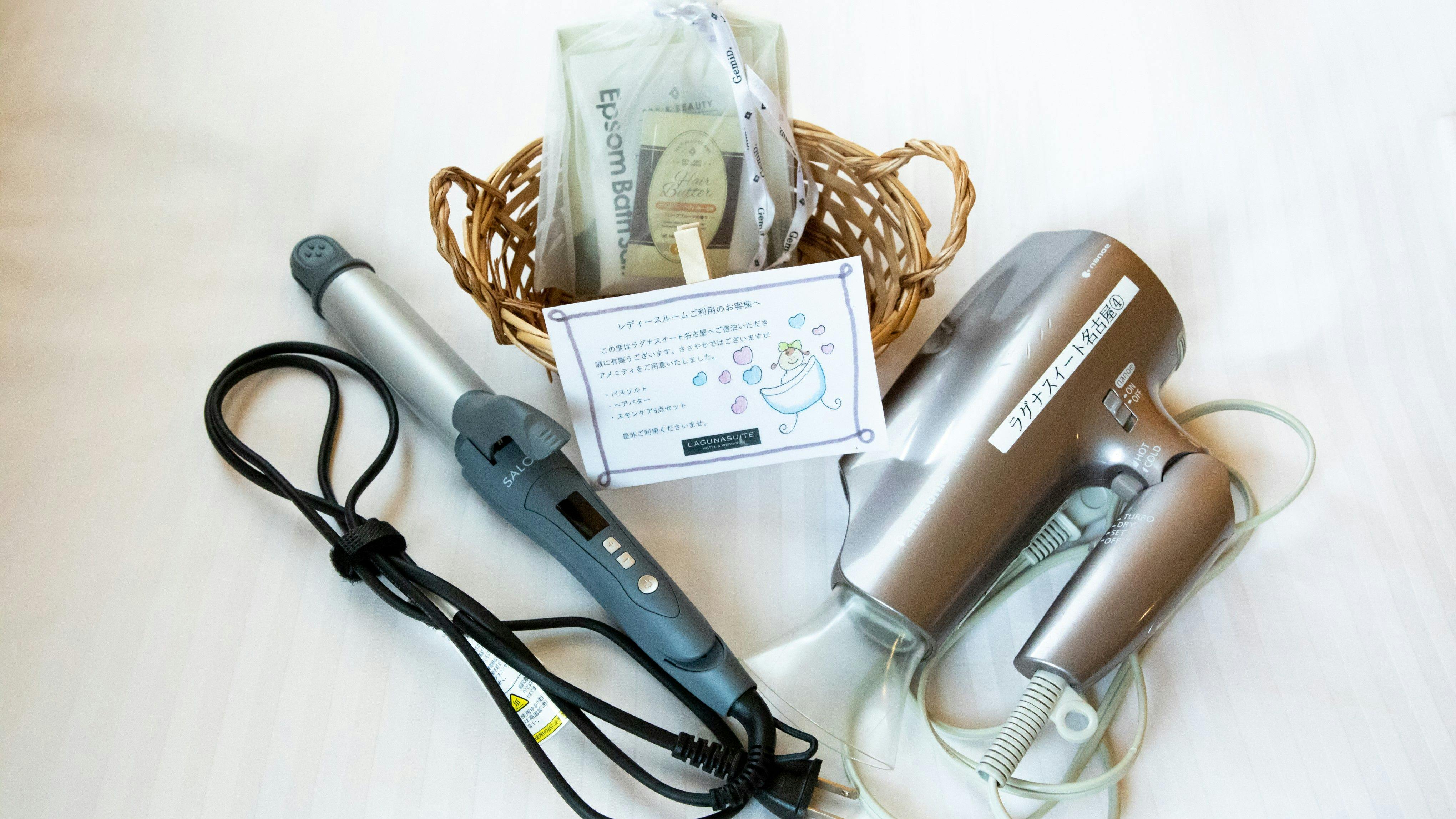 女性専用レディースルーム、化粧品アメニティも充実しております。