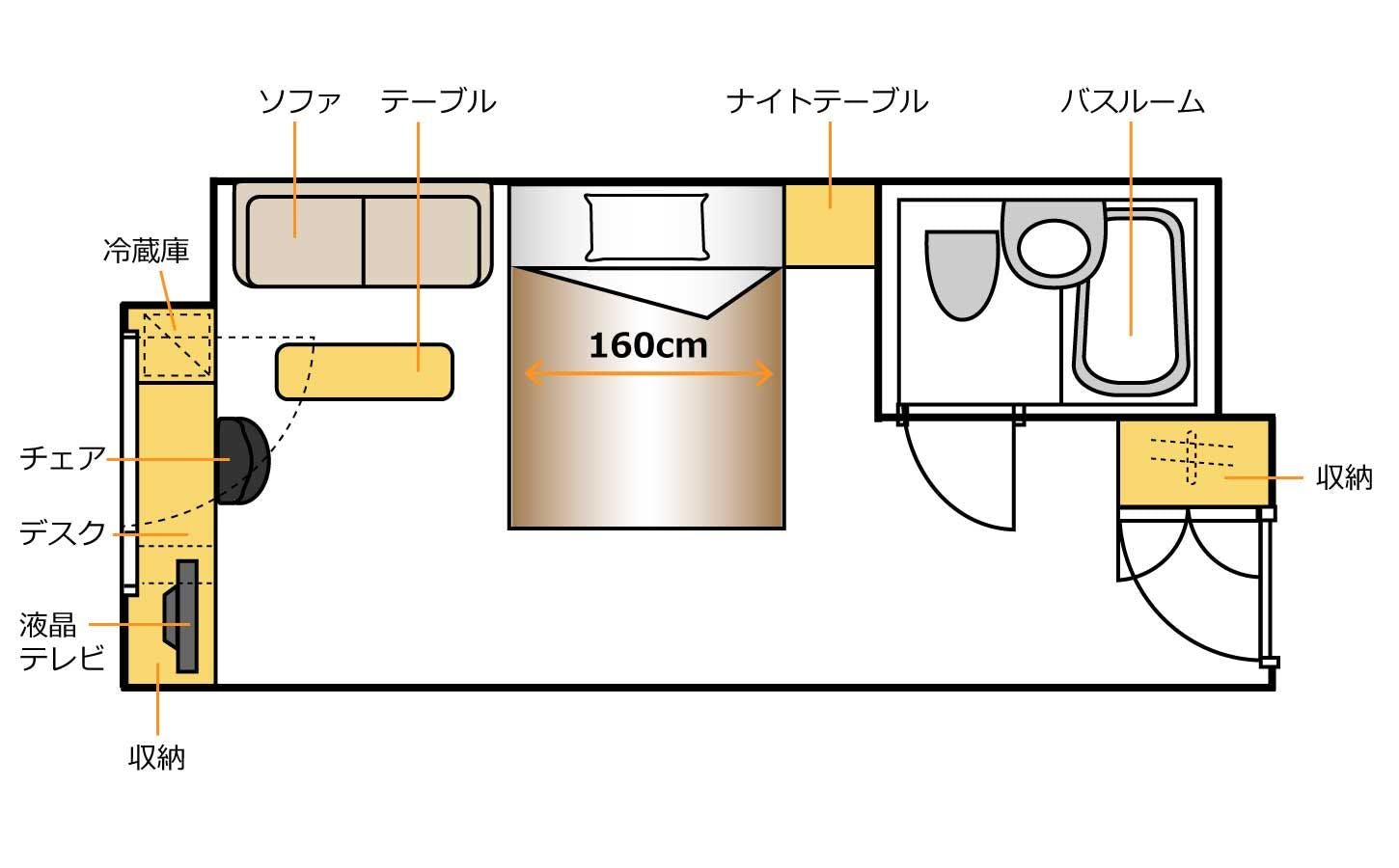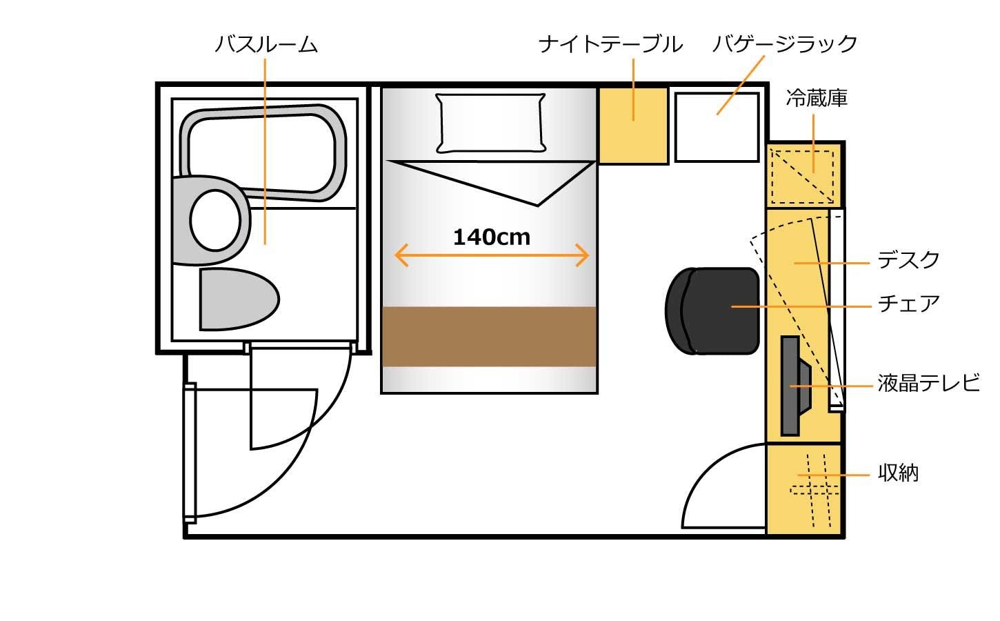 お仕事でのご宿泊やひとり旅のお客様はもちろん、カップルや親子でご利用のお客様にもおすすめのお部屋です。