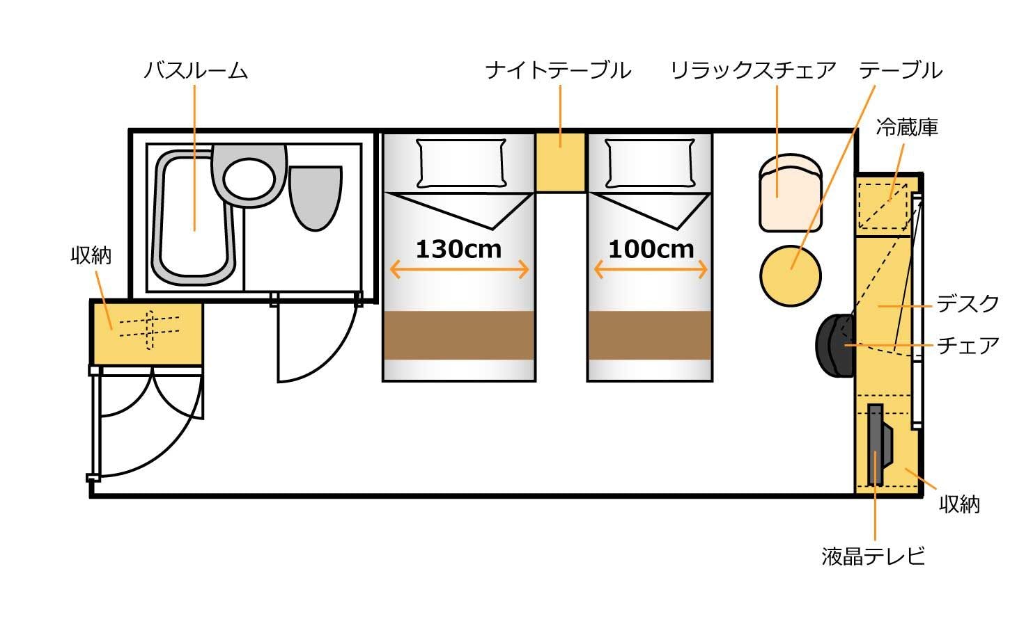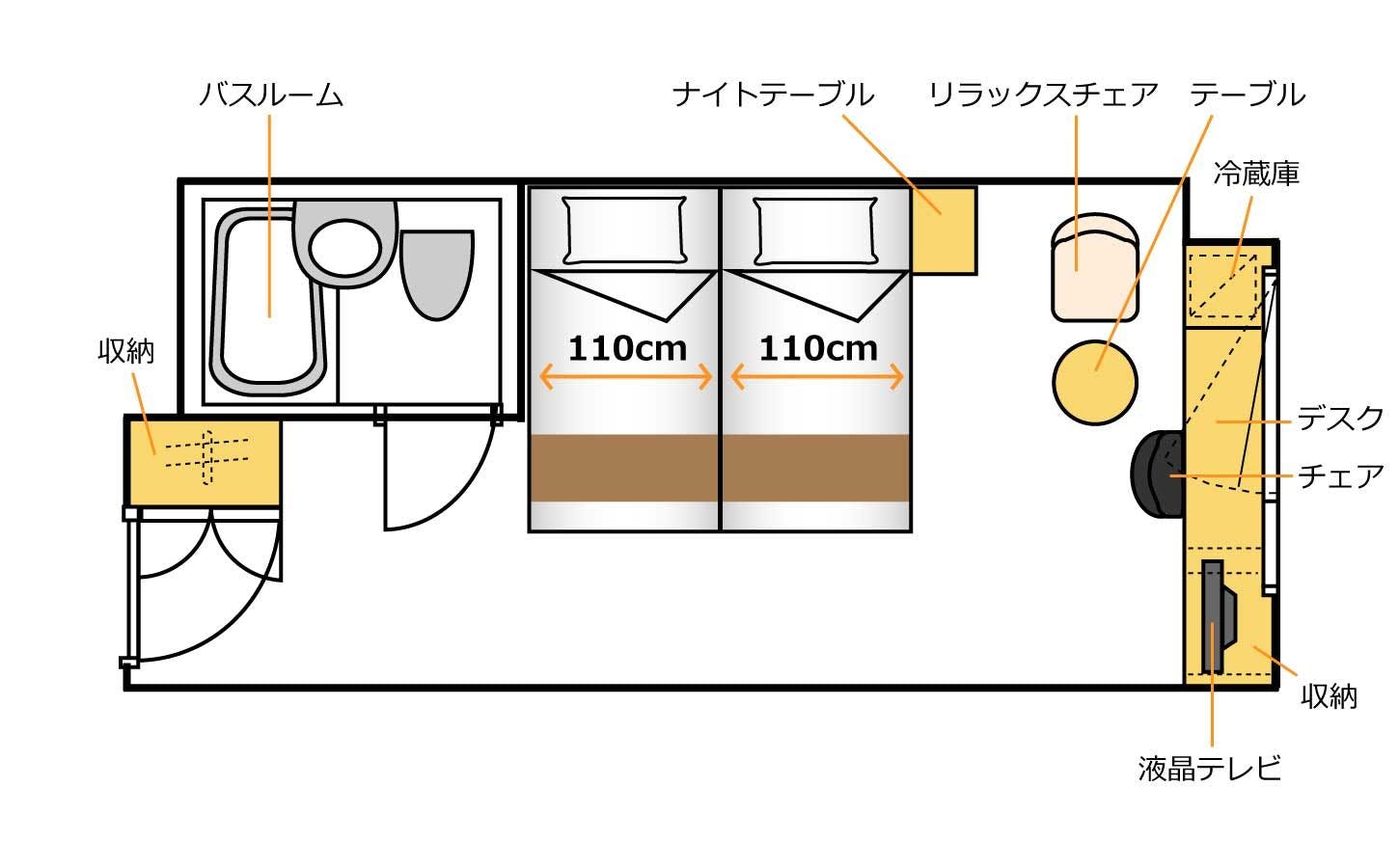 1人1台のベッドをご希望のお客様には、こちらのお部屋がおすすめです。