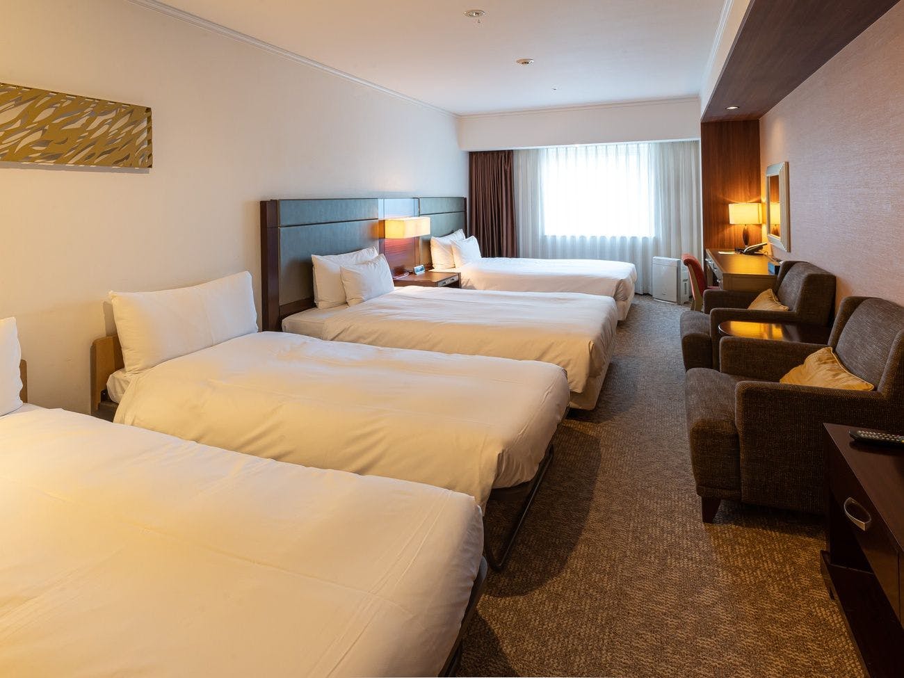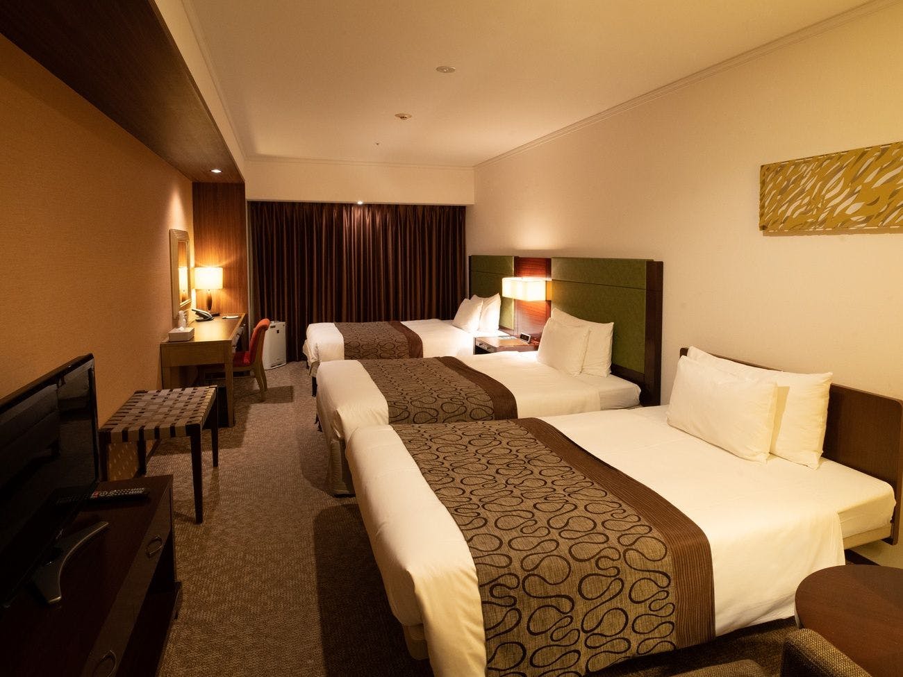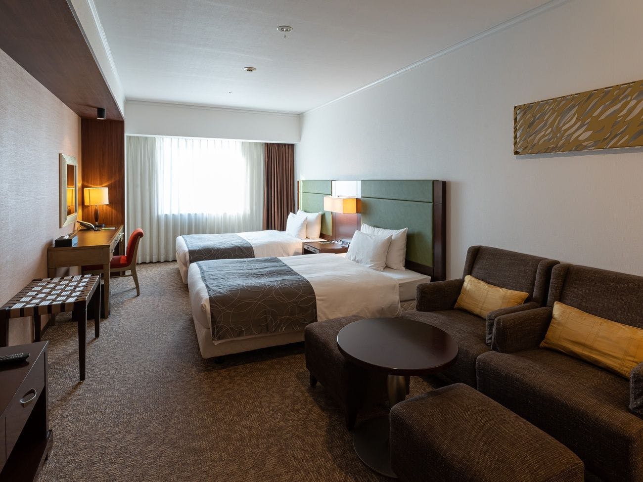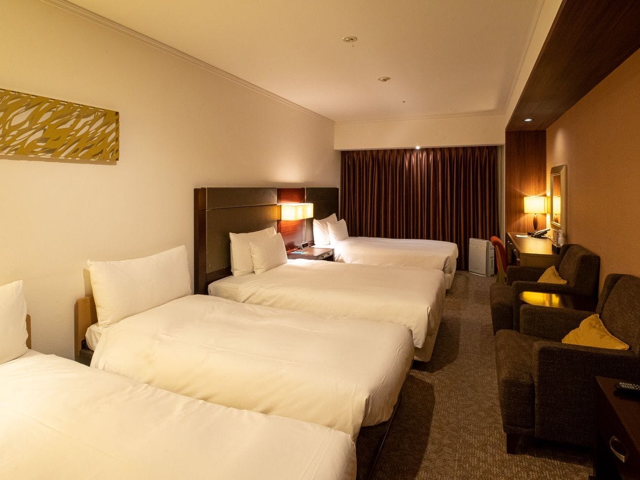 30平米超のゆったりとした空間で、快適なホテルステイをお楽しみ頂けます。シンプルながらもところどころにちりばめた細やかなデザインと、機能的なアメニティをご用意致しました。・ベッドサイズ ツイン1300×2000+エキストラベッド900×1900×2台・インターネット接続 高速LAN回線(無料)・wi-fi無料接続可能・TV「AQUOS」32インチ・加湿機能付空気清浄機