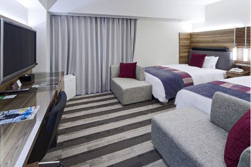 禁煙ツインルームとなります。○客室設備○シモンズ社製ベッド、液晶テレビ(地デジ対応)、加湿機能付空気清浄機、マイナスイオンドライヤー、セーフティボックス、冷蔵庫、ズボンプレッサー、リセッシュ、携帯充電器(一部機種使用不可)、有線LAN、wi-fi