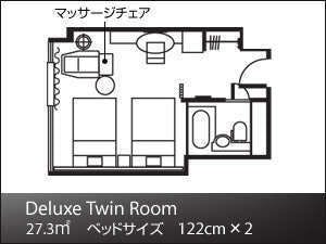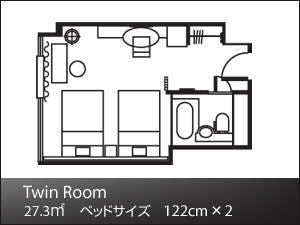 ※幅122cmのベッド2台に、エキストラベッドを追加した、3名利用のお部屋タイプになります。