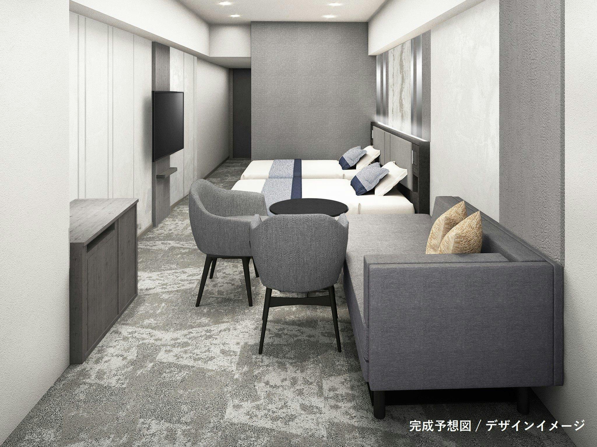 ワンランク上の快適さを追求した落ち着いた空間。ご家族やカップル、ご友人同士など様々なシーンに合わせて快適にお過ごしいただけるツインルームです。