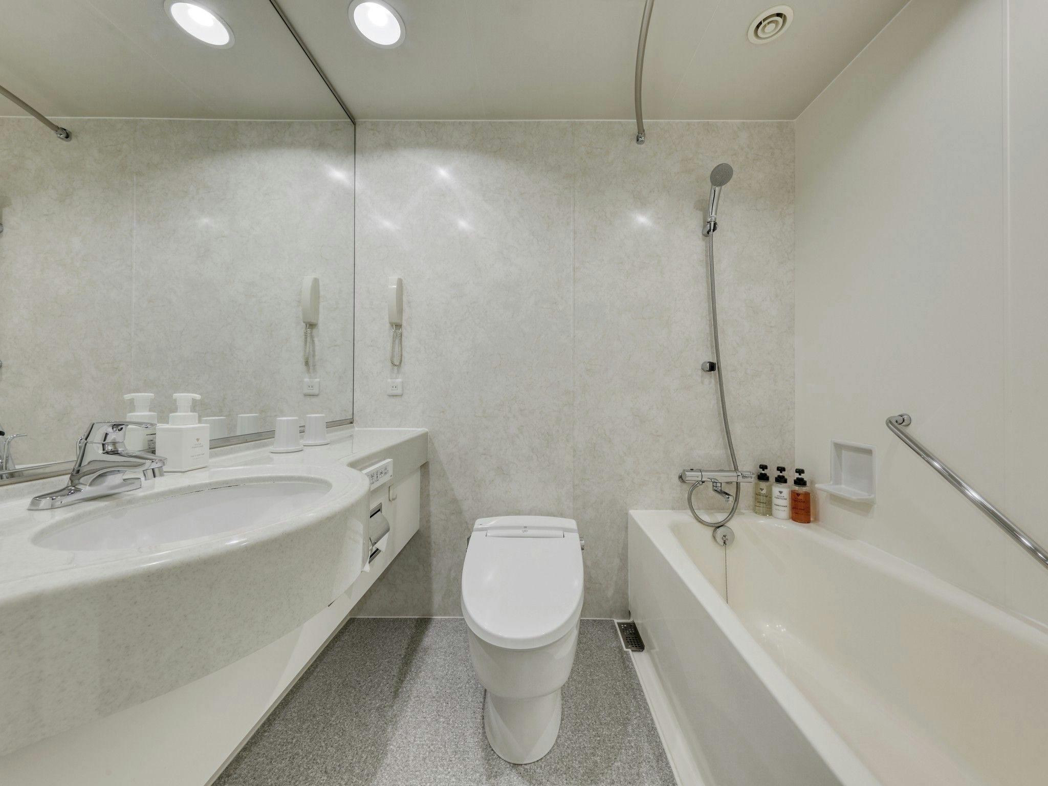 洗い場付の広々としたバスルームはお仕事や観光で疲れた体をゆったりお休みいただけます。