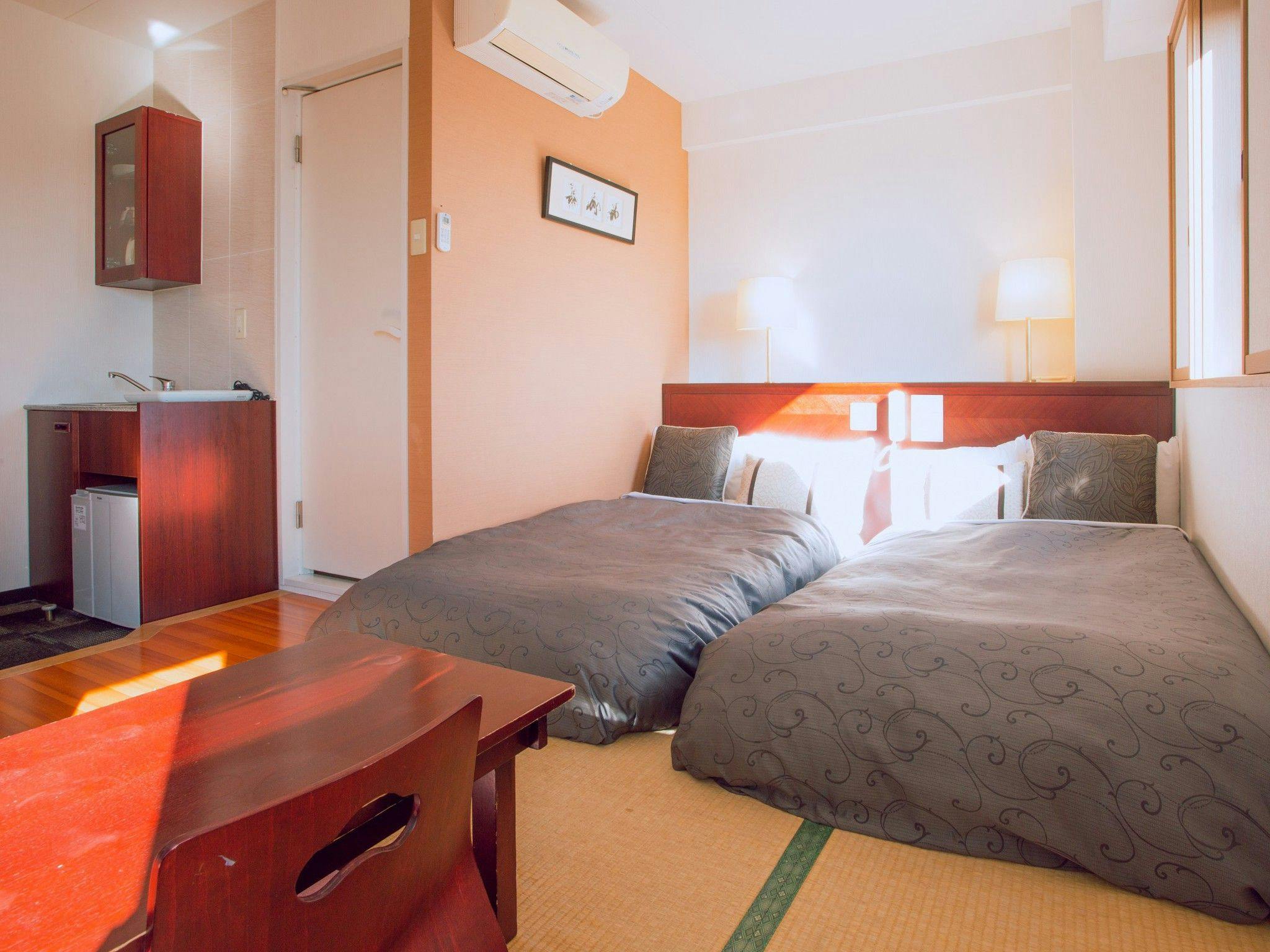 <wi-fi無料接続が可能>やっぱりツインルーム!お部屋は【喫煙タイプ】、システムキッチンが付いた長期滞在にも便利で快適なデラックスツインタイプです。