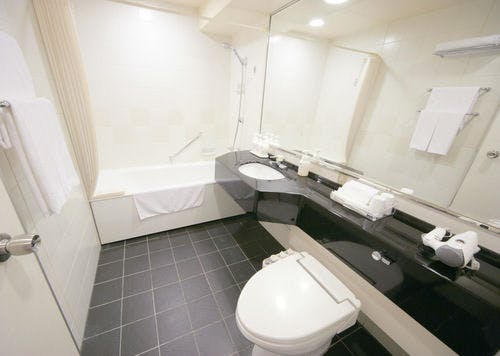 ○ゆったり寛げる5平米のバスルーム/バスタブ内では足を伸ばすこともできるのでお客様に大好評です