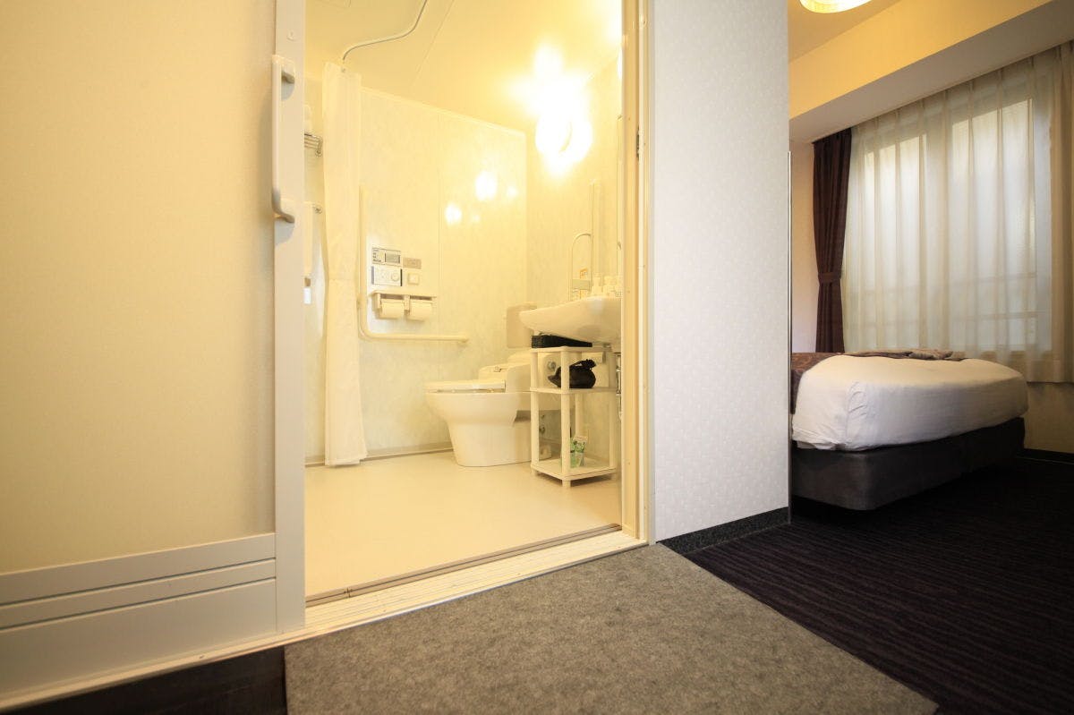 小さなお子様がいらっしゃる方や高齢者様も安心して御利用頂ける落ち着いたデザインのお部屋です。 浴室内へも段差が少なく、また手摺もご用意しております。