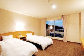 シンプルでありながらもモダンな造りで、広々とした開放感のある洋室ツインタイプ。全室バルコニー付で、部屋からオホーツク海や夕日が一望出来ます!・インターネット接続無料(Wi-Fi)