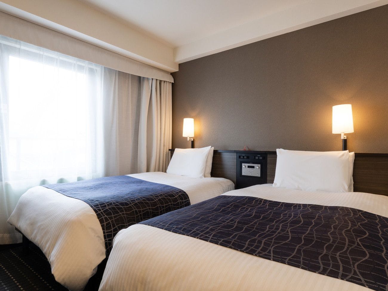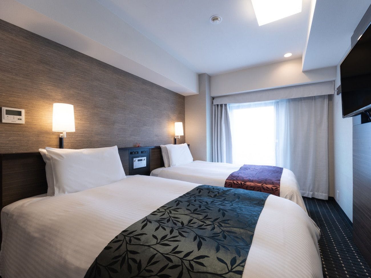 ●こちらの客室は【禁煙室】でございます。●広さ 13平米●105cm幅のベッドを2台設置●未就学児のお子様2名様まで添い寝可能●アパホテルオリジナルベッド「Cloud Fit」完備●やわらか高級羽毛布団(デュベ)完備●32型液晶テレビ完備●Wi-Fi接続無料(有線LANとの同時使用可能)●温水洗浄便座完備
