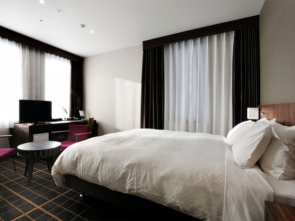 (レイアウトはお部屋によって異なります。また建物の構造上、全室窓を開けることは出来ません。3名利用時はソファーをベッド仕様に変更となります。)