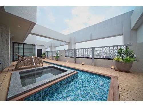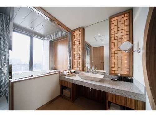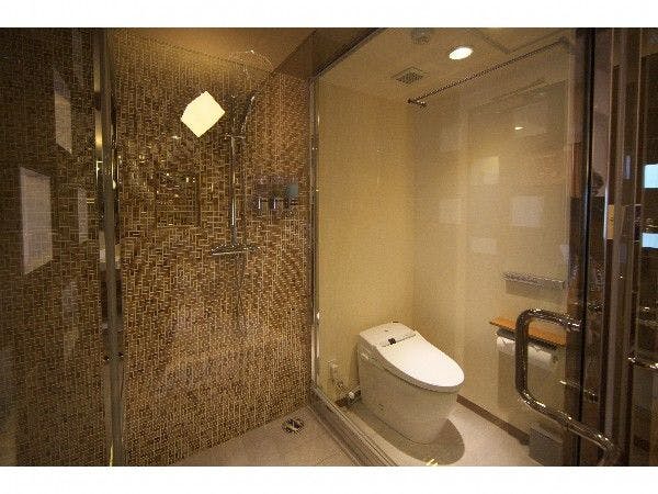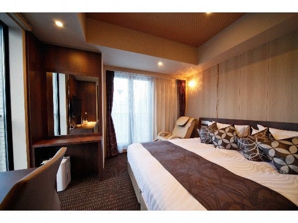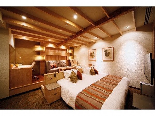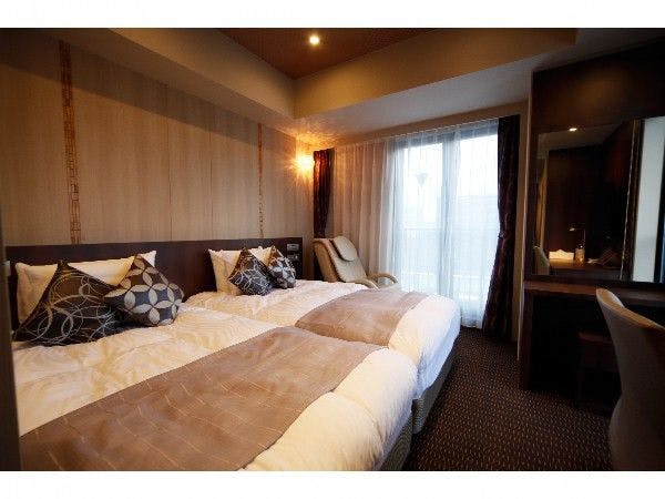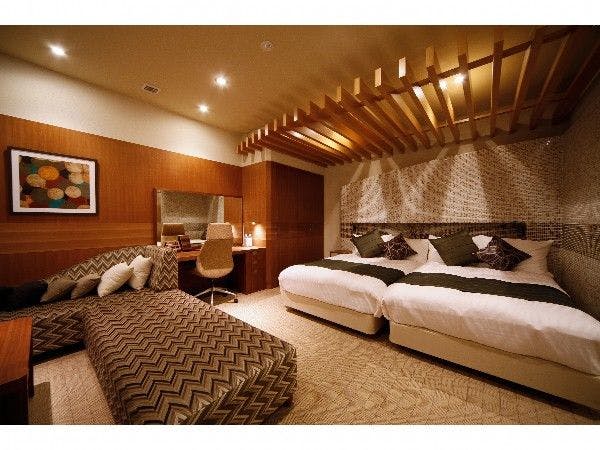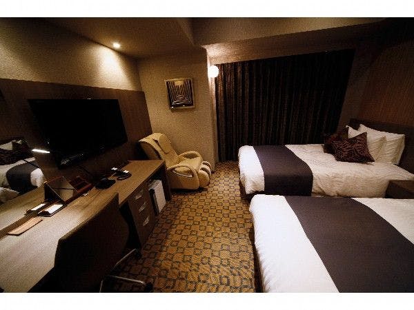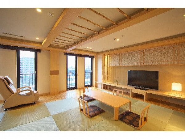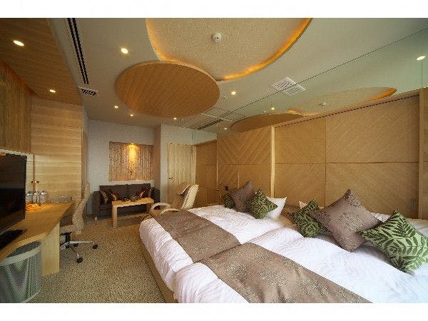 水と木のナチュラルテイストのデザインで彩り、全室マッサージチェア付、10階には露天風呂付きのSPAを完備。