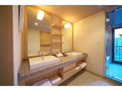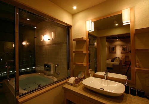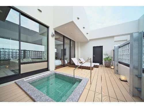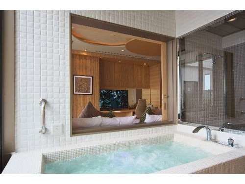 テレビ付ジャグジーバスに岩盤浴、スチームサウナ、テラスには露天風呂をご用意しております。
