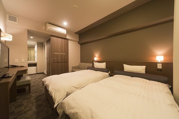 <wi-fi無料接続が可能>■2階に男女別超軟水大浴場完備■サータ社製ベッド(100×195cm)2台■広さ19.7~24.5平米■ユニットバス&温水洗浄機付トイレ■液晶テレビ■空気清浄機能付加湿器■プラズマクラスタードライヤー■冷蔵庫&ポット